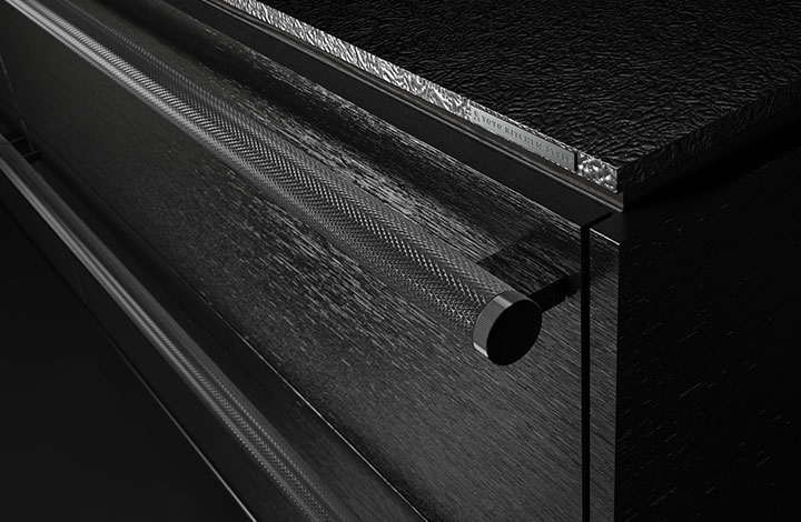 奢侈的实施了真正的碳纤维加工的把手。从任何方向看都是美丽的斜纹线条图案,是为您特别设计的。可与全部门材料组合。