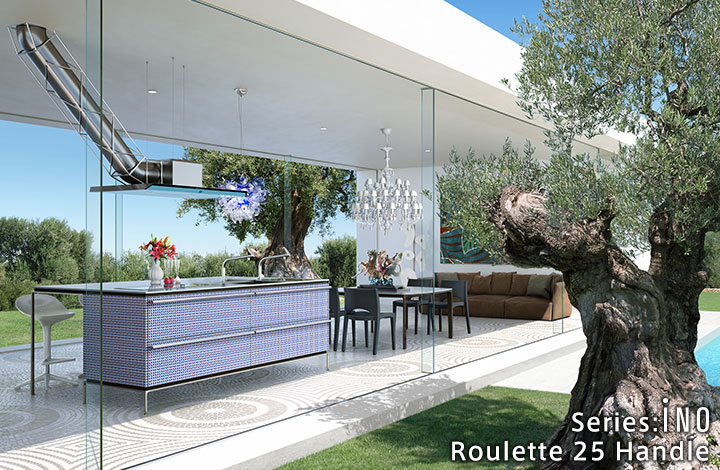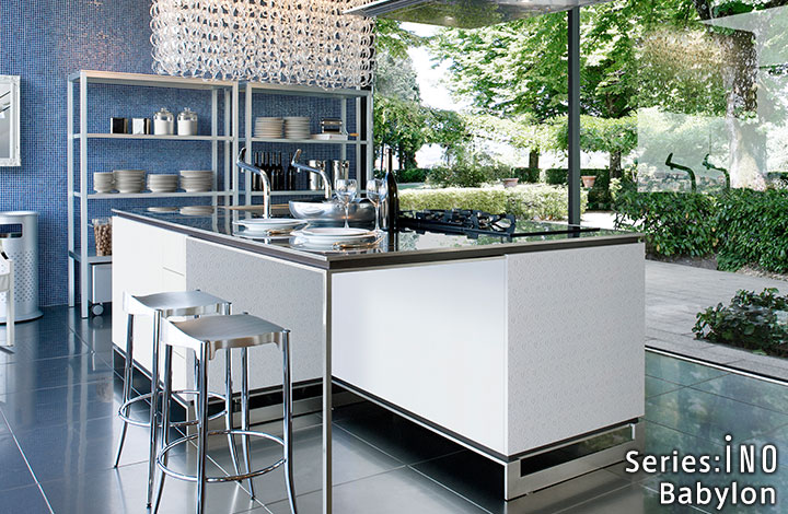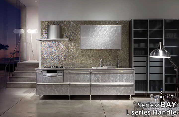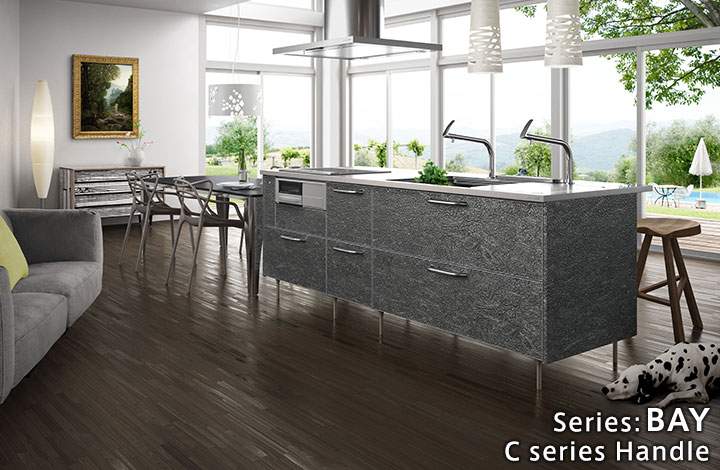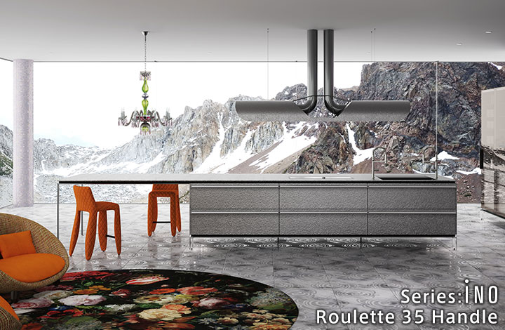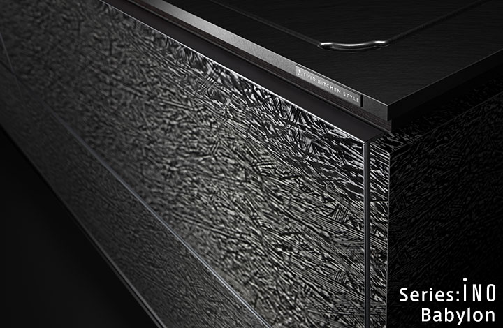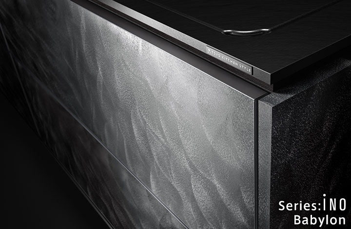 天然石的奢华感。使用了通过特殊技术制作的天然石的厨房门。