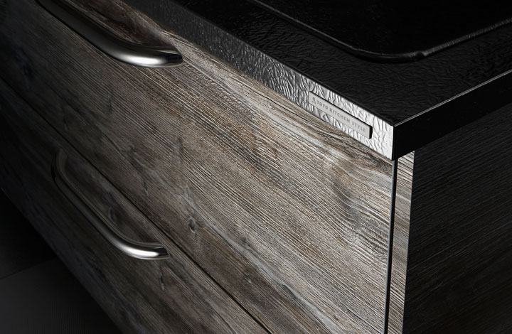 再现了长期使用后出现的粗糙的划痕。不惜工时不遗余力地一件件加工完成。可与砖红/漂白的门材料组合。