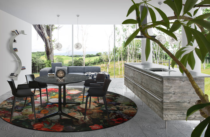 空间变化多端的威尼斯马赛克将厨房装饰成艺术品。可实现与地板、墙壁相互匹配的整体空间的搭配。