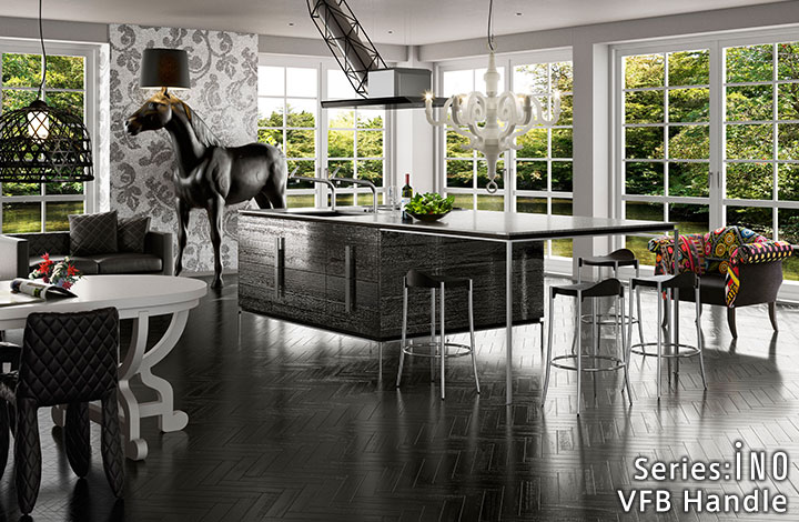镀铬豪华镜面抛光。与明亮的门色组合后,就会变成厨房的强大亮点。可与淡色的门材料组合。