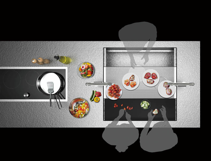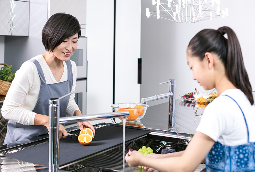また、前後左右にスライドするマルチプレートとまな板を使えば、「洗う」、「切る」、「盛り付ける」といった加熱以外の調理がシンク内で完結します。