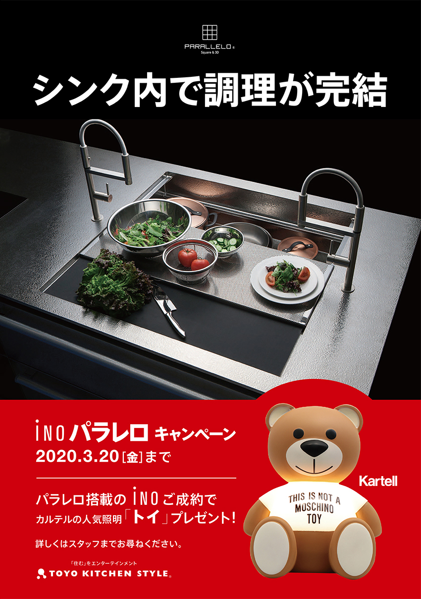 期間中、パラレロ搭載のINOキッチンをご成約いただいた方へ、Kartell(カルテル)の人気照明「トイ」をプレゼントいたします!!