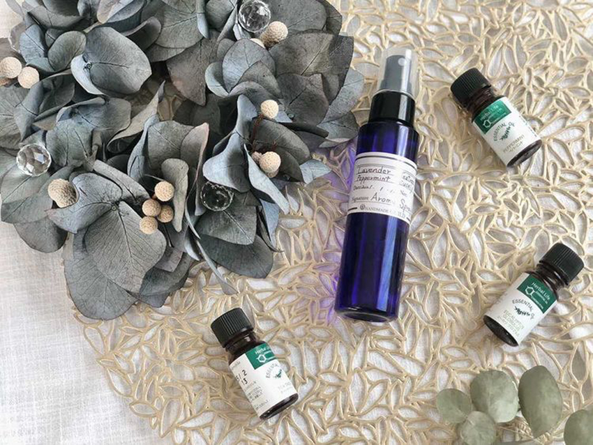 約20種類の精油からお好きな3~4種類の香りをお選びいただきブレンドしていただけます。(スプレーボトルは100mlです)