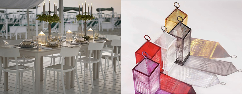 kartellのアイテムなら樹脂素材なのでお部屋の中はもちろん、屋外にもぴったりです。