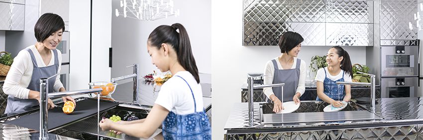 使いづらかったシンクとコンロの隙間の調理台での作業をなくし、調理台とシンクを一体化することで、究極の「ゼロ動線」へと導きます。