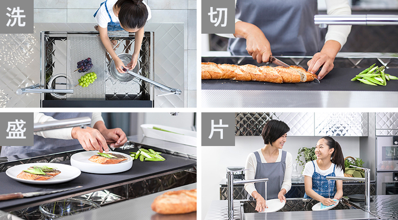 シンクの中で調理が完結する「パラレロシンク」により横の移動が不要となり、一歩も動かずに調理を行うことができます。