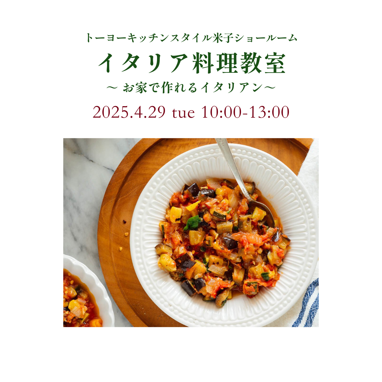 米子ショールームでは杉野育子さんによる「イタリア料理教室」を開催いたします。