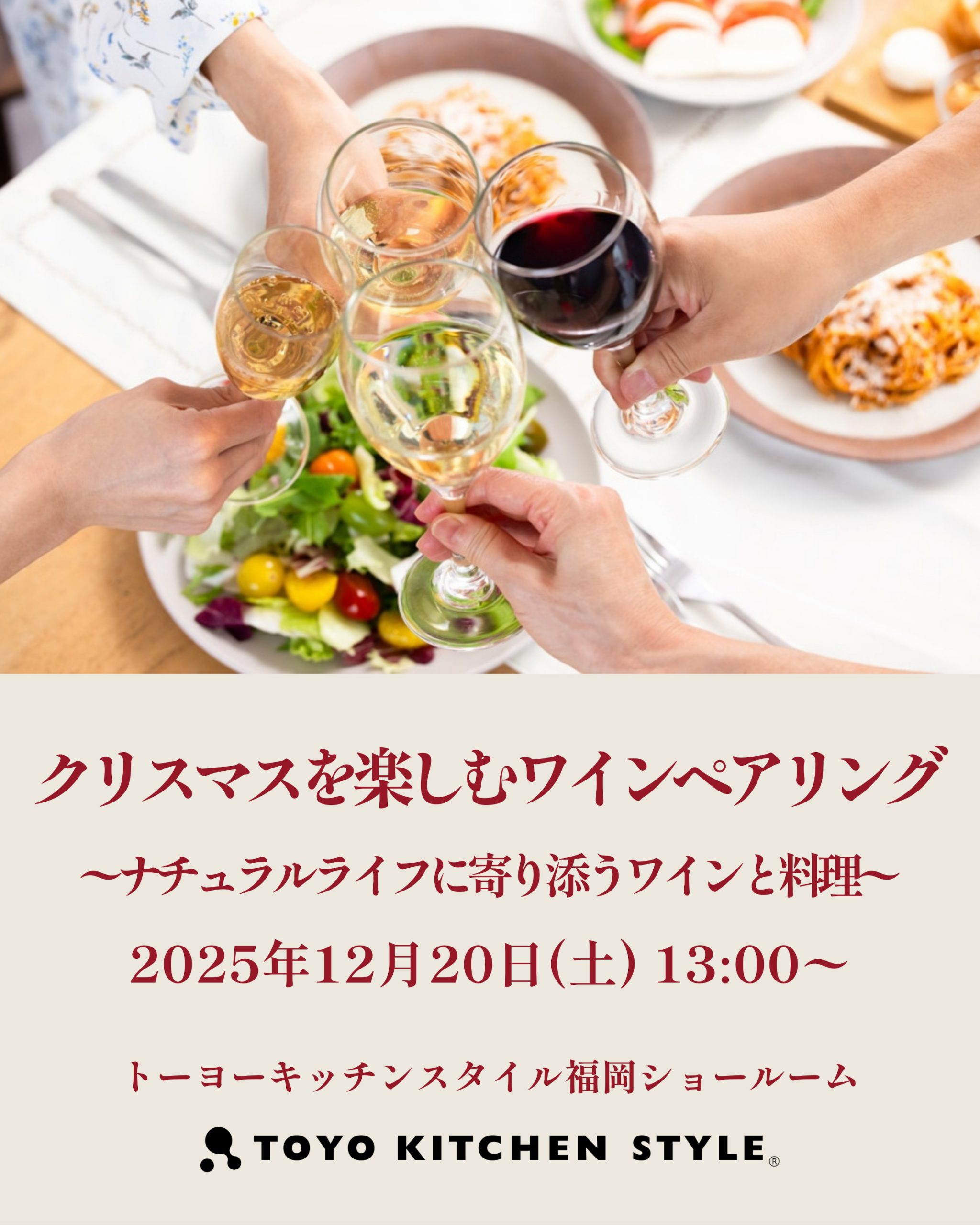 福岡ショールームにて「クリスマスを楽しむワインペアリング〜ナチュラルライフに寄り添うワインと料理〜」イベントを開催します。