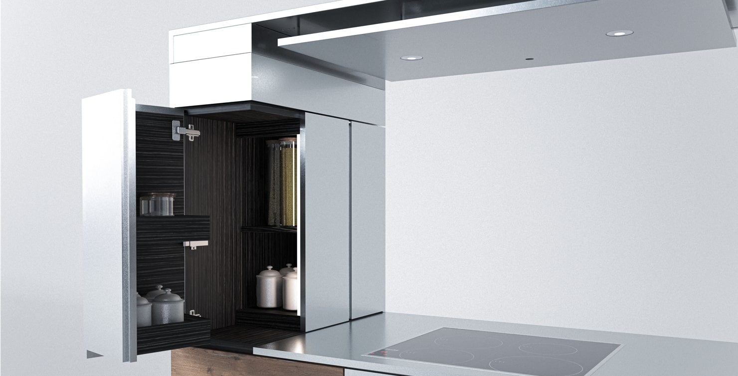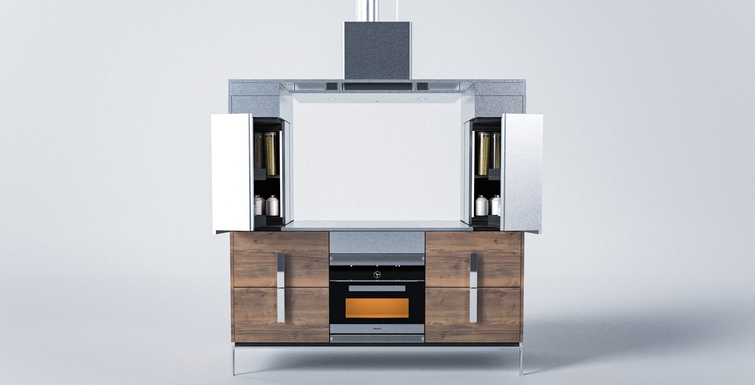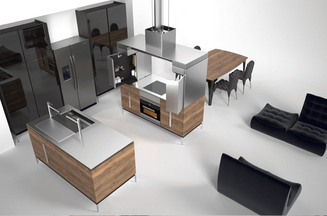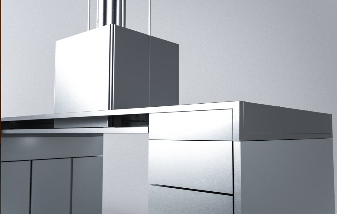 COOK ISOLA Optimized design for the Square design with integrated units on both sides. Stainless steel Titanium tone polish finish. High complementation despite being an island type.