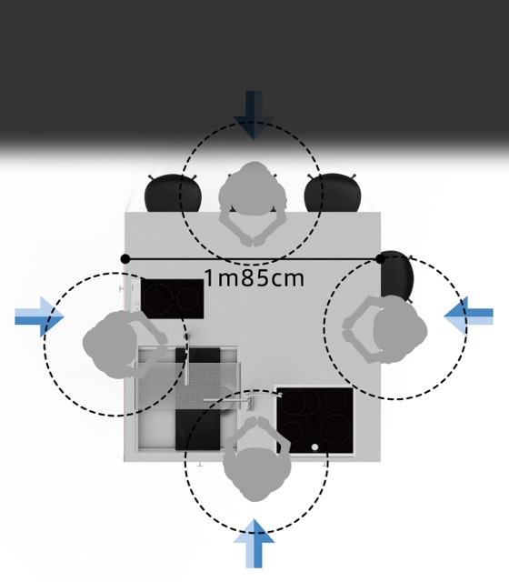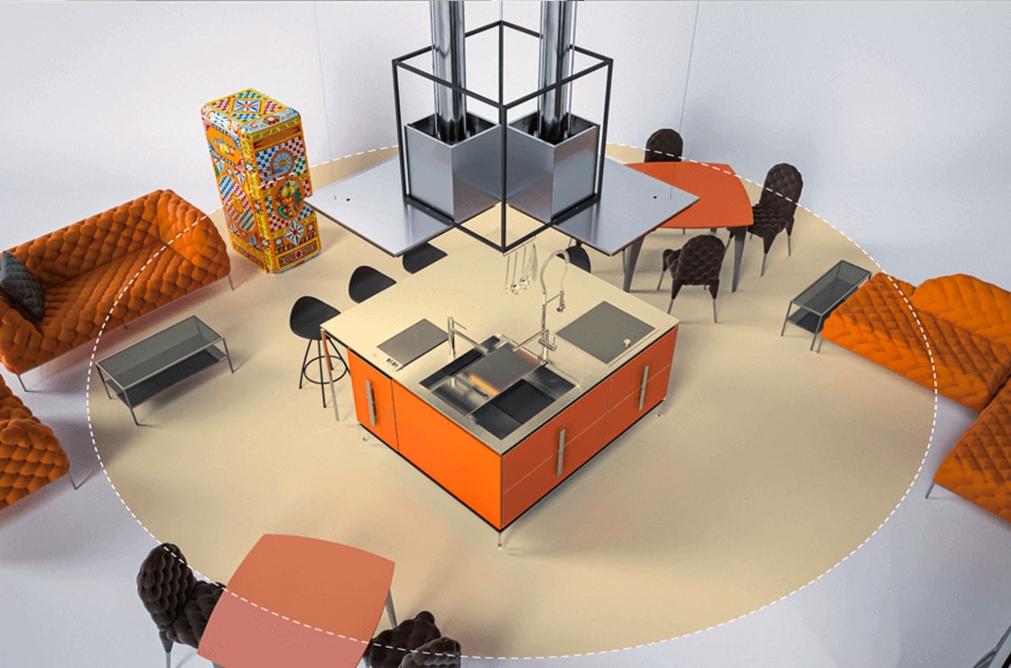 Placing COOK ISOLA in the center of a room brings the living line closer to zero and makes it more comfortable.
