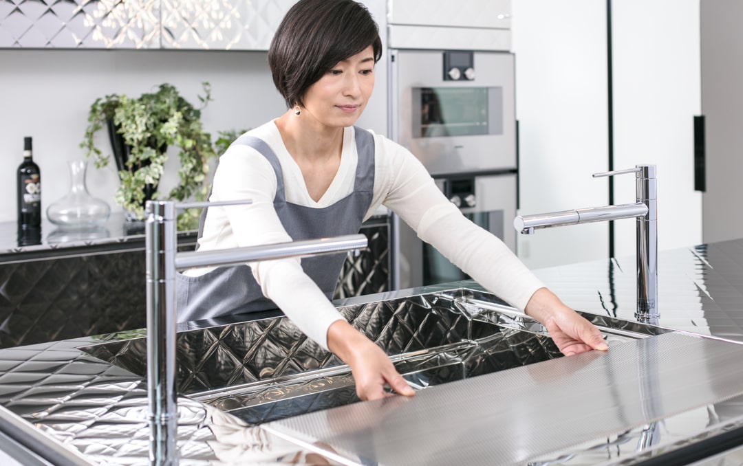 PARALLELO is most different from other sinks because it allows you to complete cooking in the sink. PARALLELO With the "Sink" you can wash, cut, and serve all your food, and even prepare food in the sink. The work that used to be done back and forth between the sink and the cooking area can now be completed without moving a single step in front of the sink.