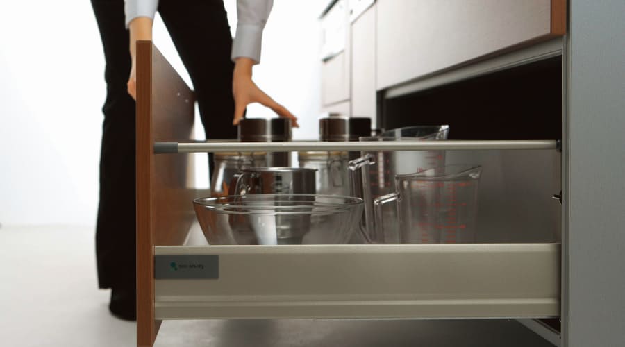 ドアマテリアル Black Oak Grain ダーク色に染色した木目調扉。水平方向に細かな濃淡があり、柔らかく落ち着いた風合い。深い色合いの木目が、キッチンを重厚なイメージに変え、高級感あふれる空間をつくります。