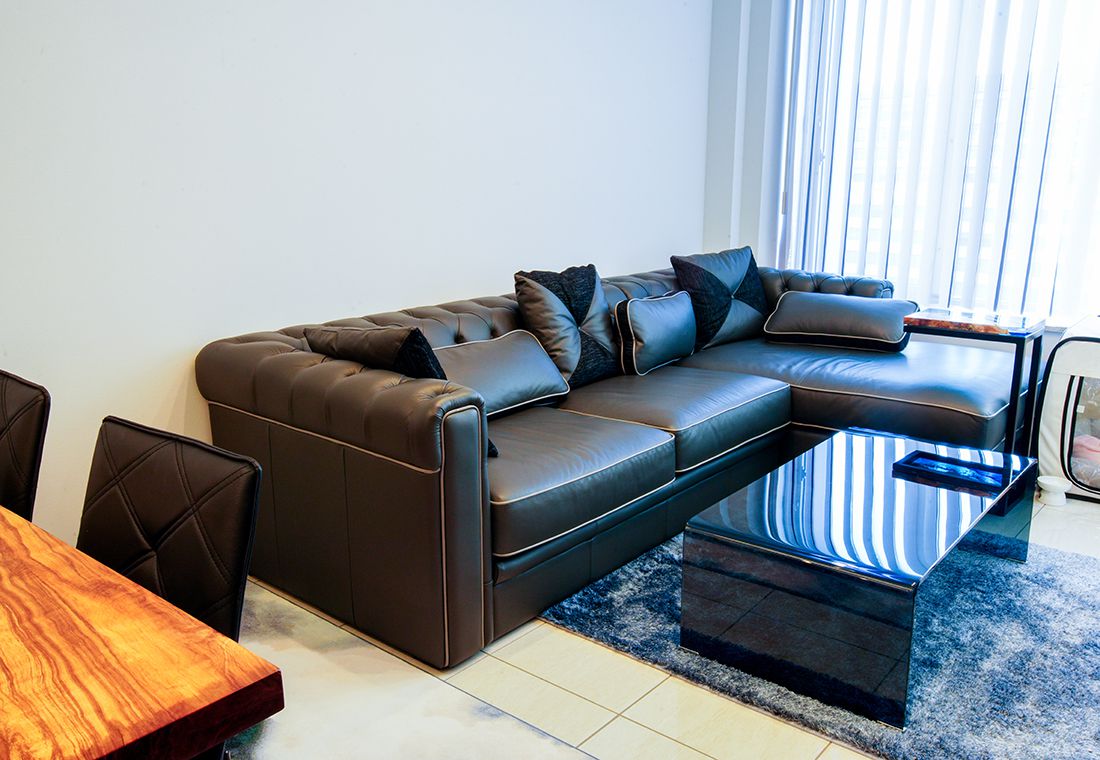 Soft light pours in from the large, wall-to-wall windows of Mr. I's residence.