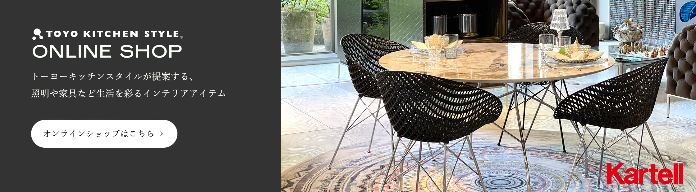 トーヨーキッチンスタイル が提案する、照明や家具など生活を彩るインテリアアイテム。オンラインショップはこちら。