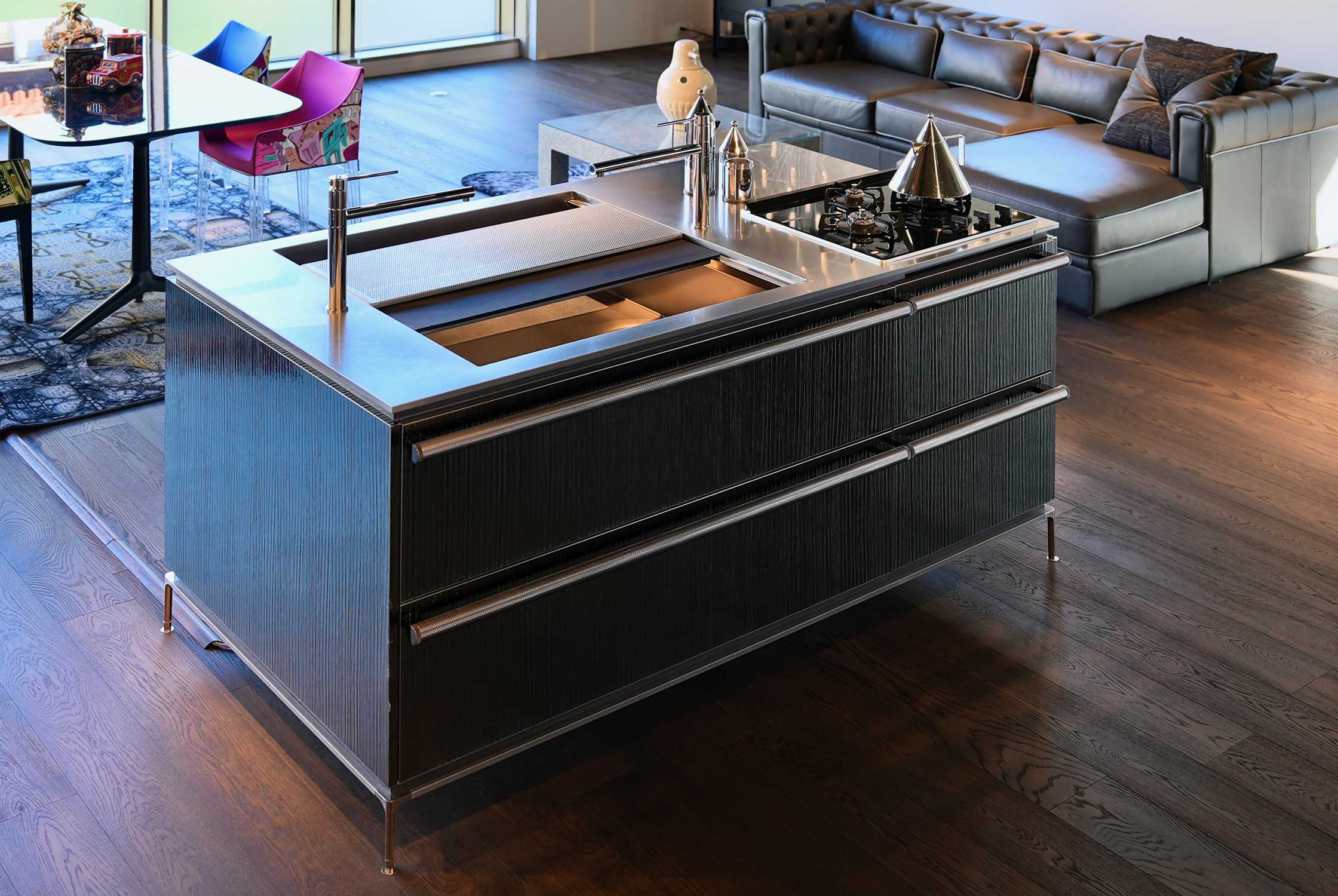 アイランドキッチンでも大容量の収納力を持ち、ダイナミックに調理を楽しむことができるシーランド。調理側、ダイニング側両方に収納を儲けることができるキッチンです。