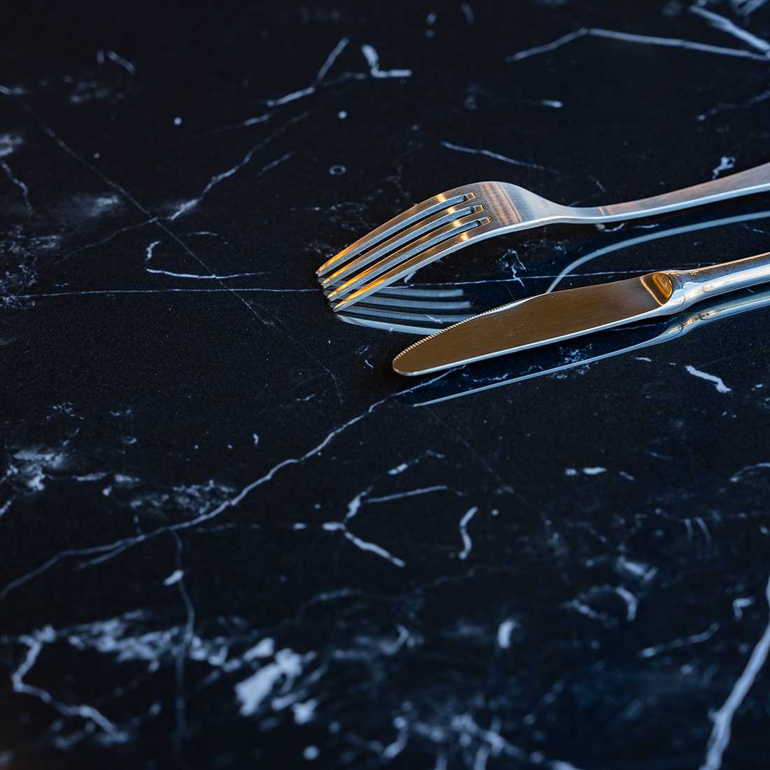 落ち着いたシックなインテリアを目指すなら、濃い色のセラミックトップを選ぶのがおすすめです。その際も大理石柄が際立つ天板を選ぶことで、重たい印象になり過ぎず空間にメリハリが生まれます。また、表面に艶があることで、さらに高級感のある雰囲気を演出できます。