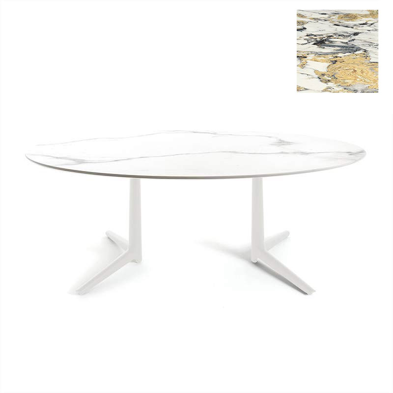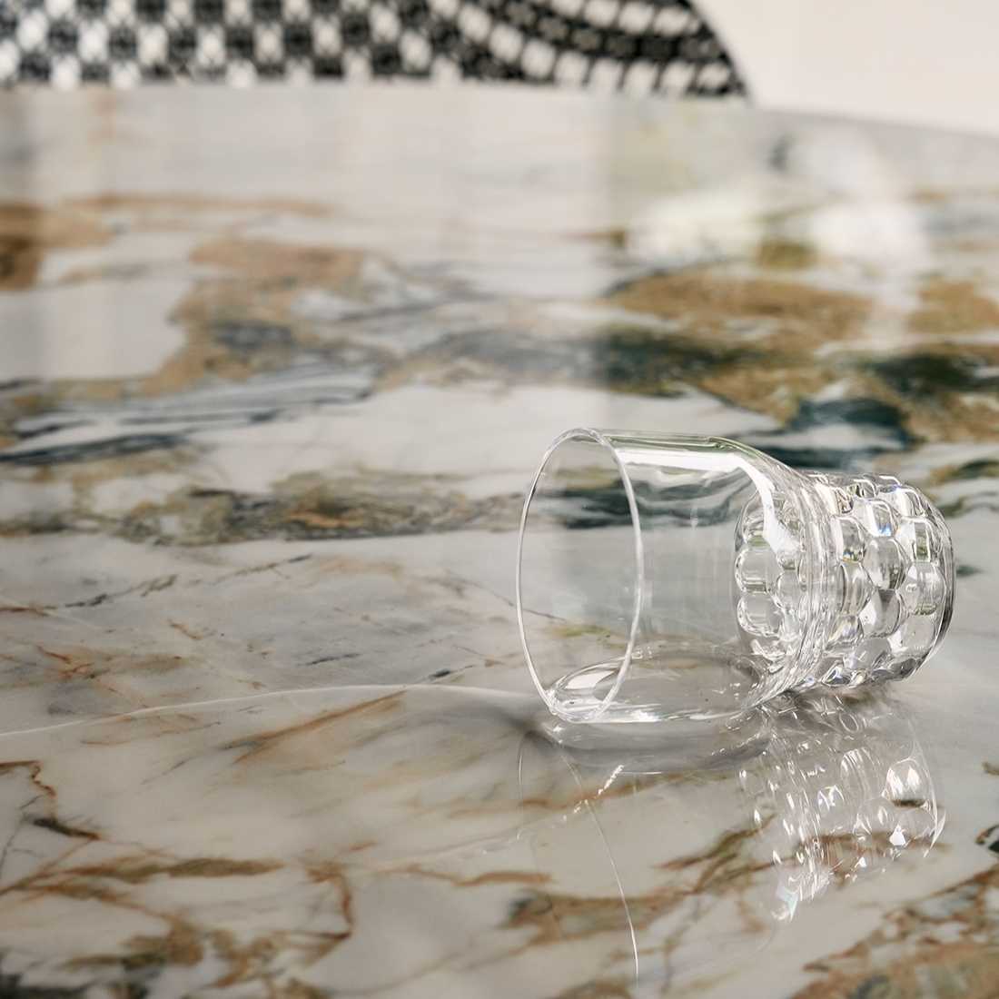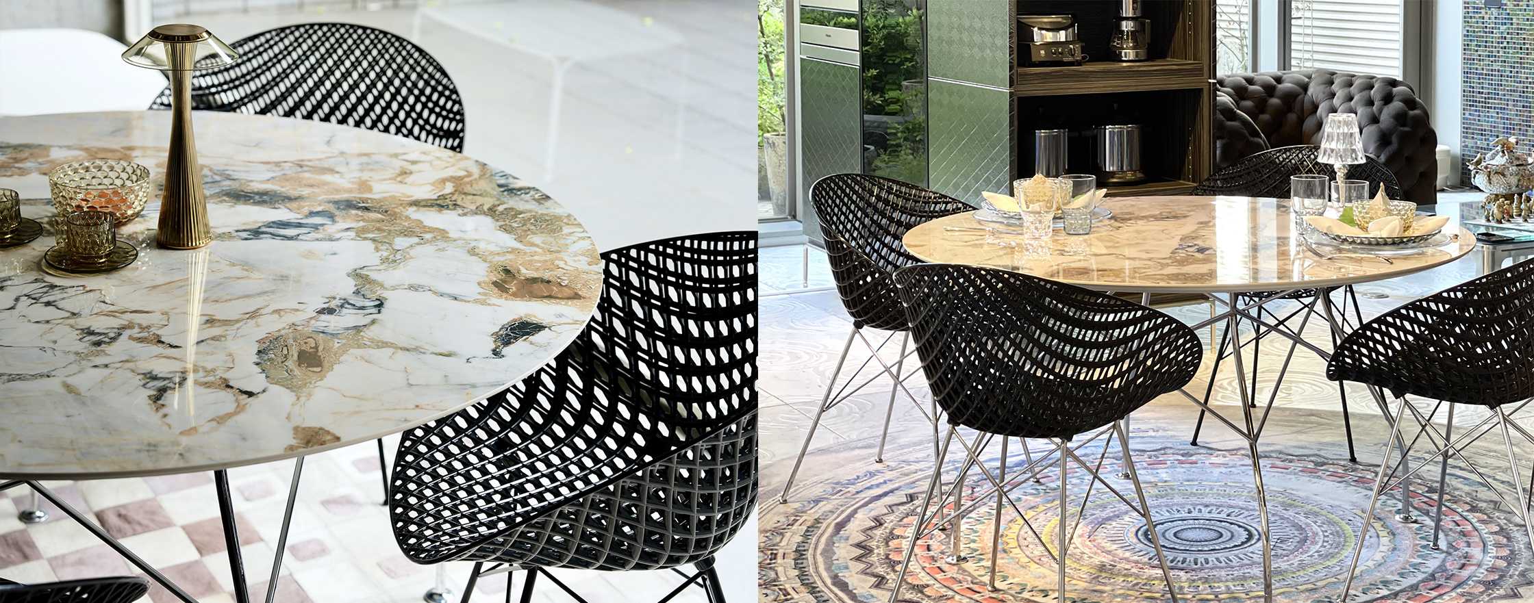 セラミックテーブルとは、天板に陶磁器を用いたテーブルです。Kartellは素材にこだわり、美しさや肌触りだけでなく、サスティナブルな原材料を用いて生産されたイタリア産の高品質なセラミックを採用しています。
