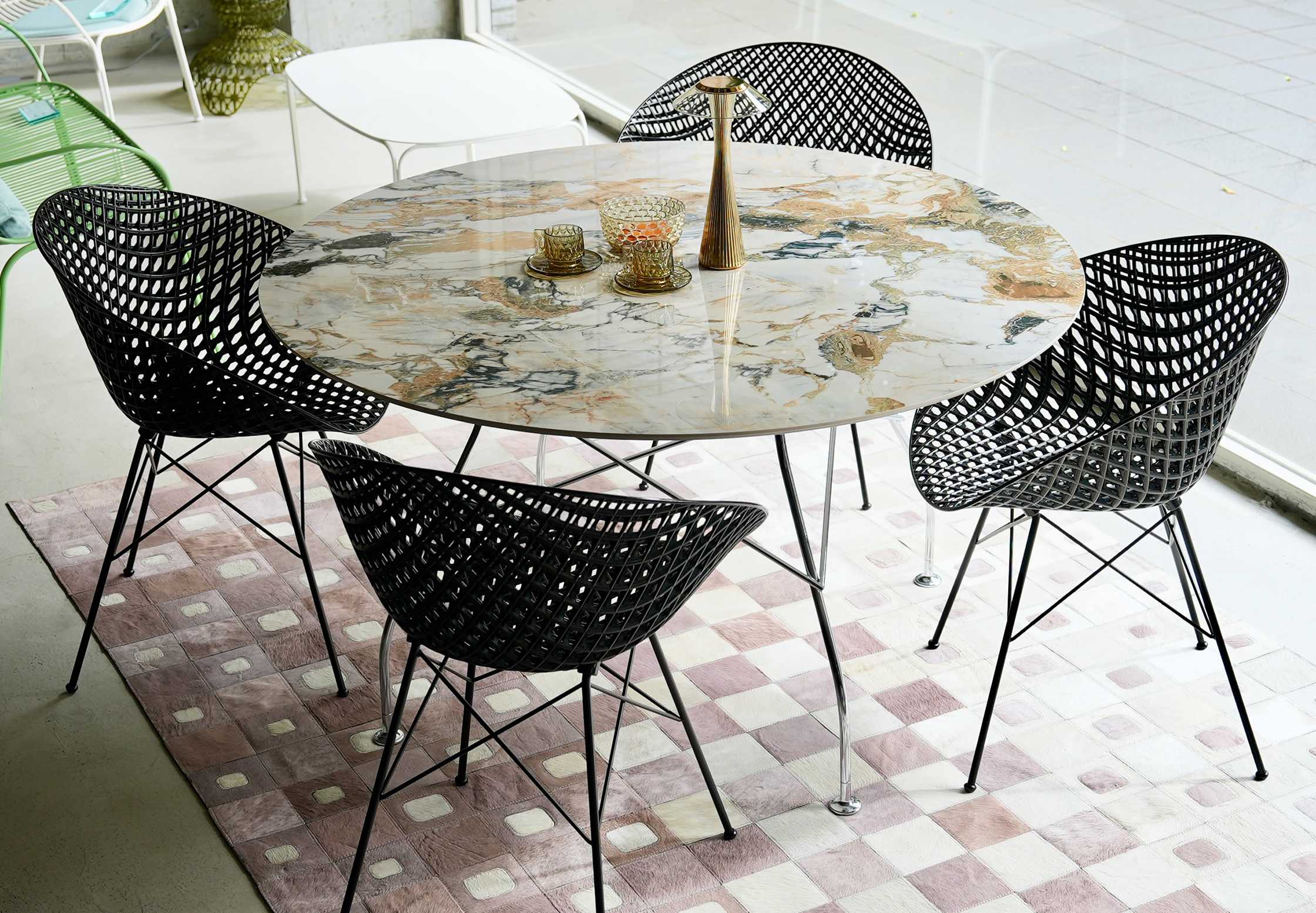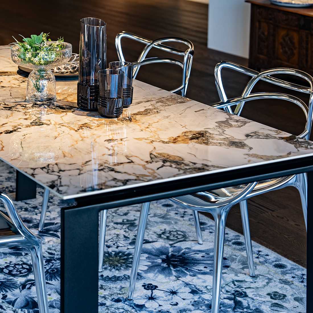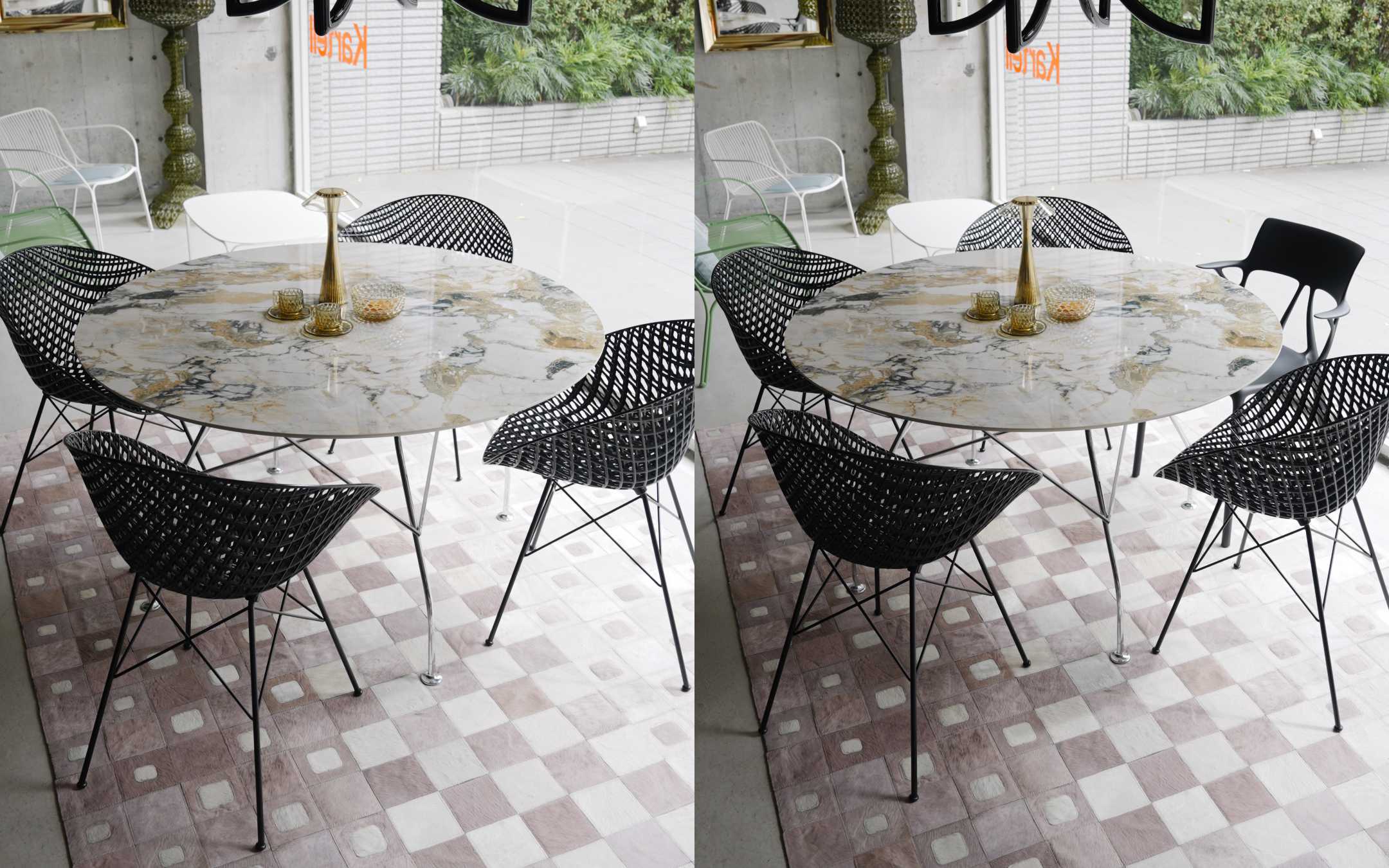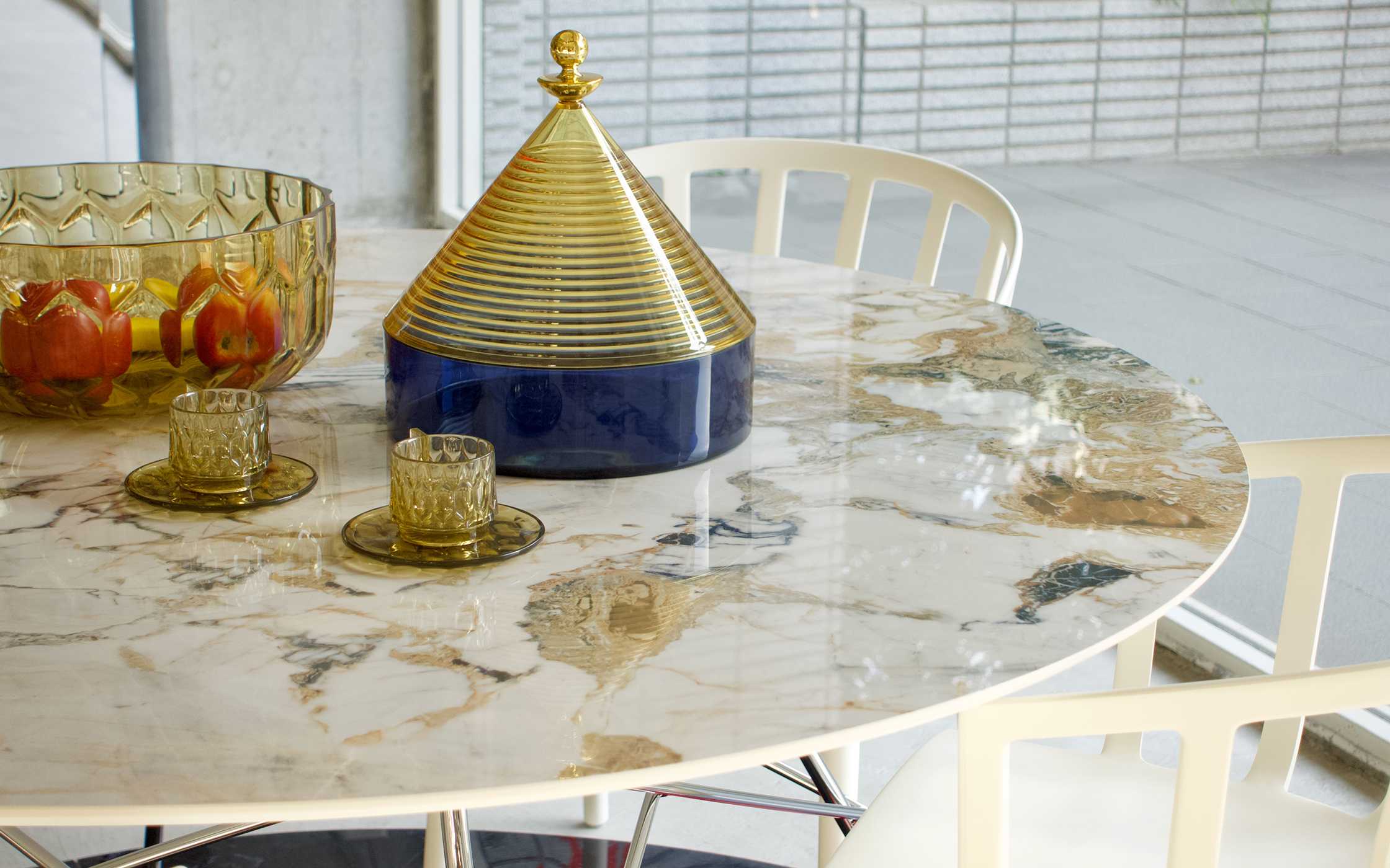 Kartellの中で一番人気のテーブルです。エレガントな大理石柄のシンフォニーがインテリアに華やかさをもたらしつつ、日本の住宅によくマッチします。