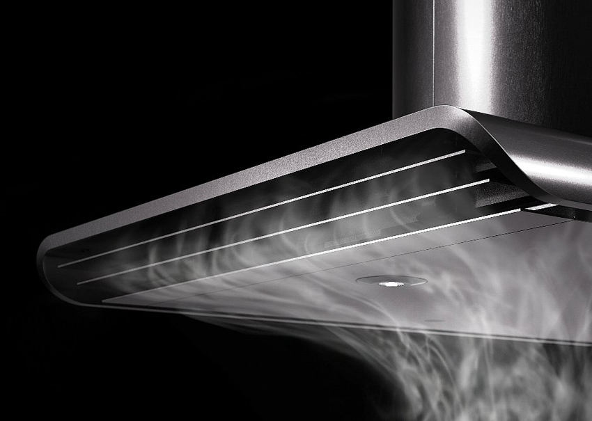 ステンレスの素材感や仕上げ、左右に逃げた煙を捕える為に配置されたサイドウィングと、清掃性を考慮したt=15mmキャノピーが描く曲面など、機能性とデザインを両立しました。