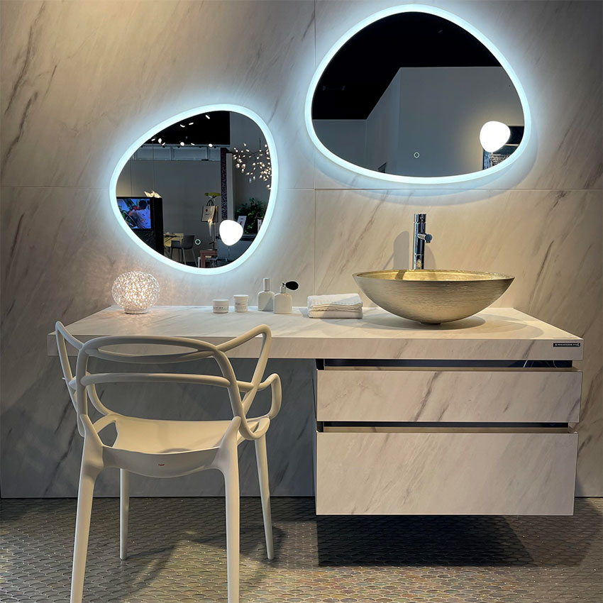 一般的なユニット式の洗面化粧台と違い、鏡も自由にセットできるので、メイクが終わったら、この空間でドレスアップまで完結できます。