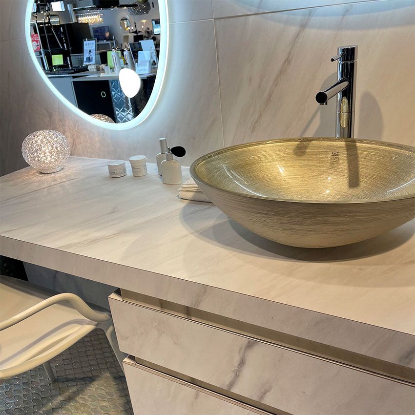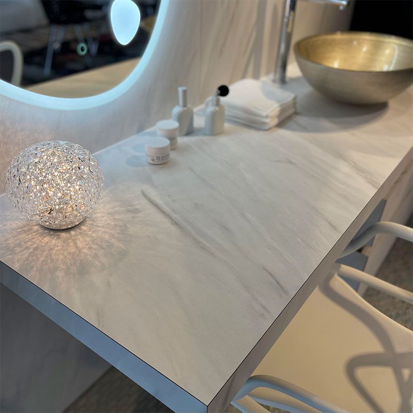 最先端のデジタルプリント技術で精巧に表現された、リアルな大理石柄が楽しめます。触れた感触もソフトで滑らか、天然石と見まごうばかりの質感を持っています。