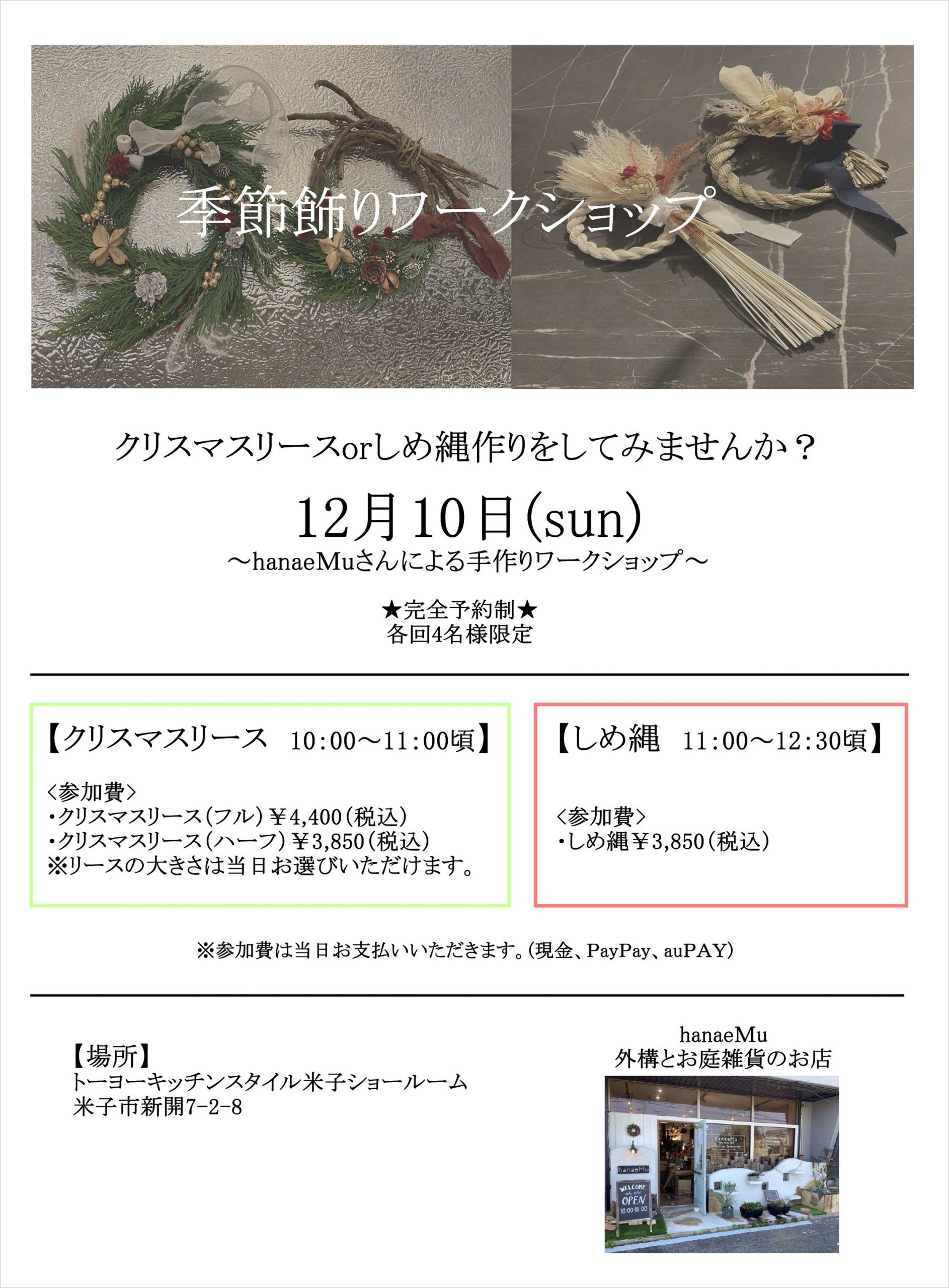 米子ショールームにてhanaeMuさんによる「季節飾りワークショップ」を開催します。