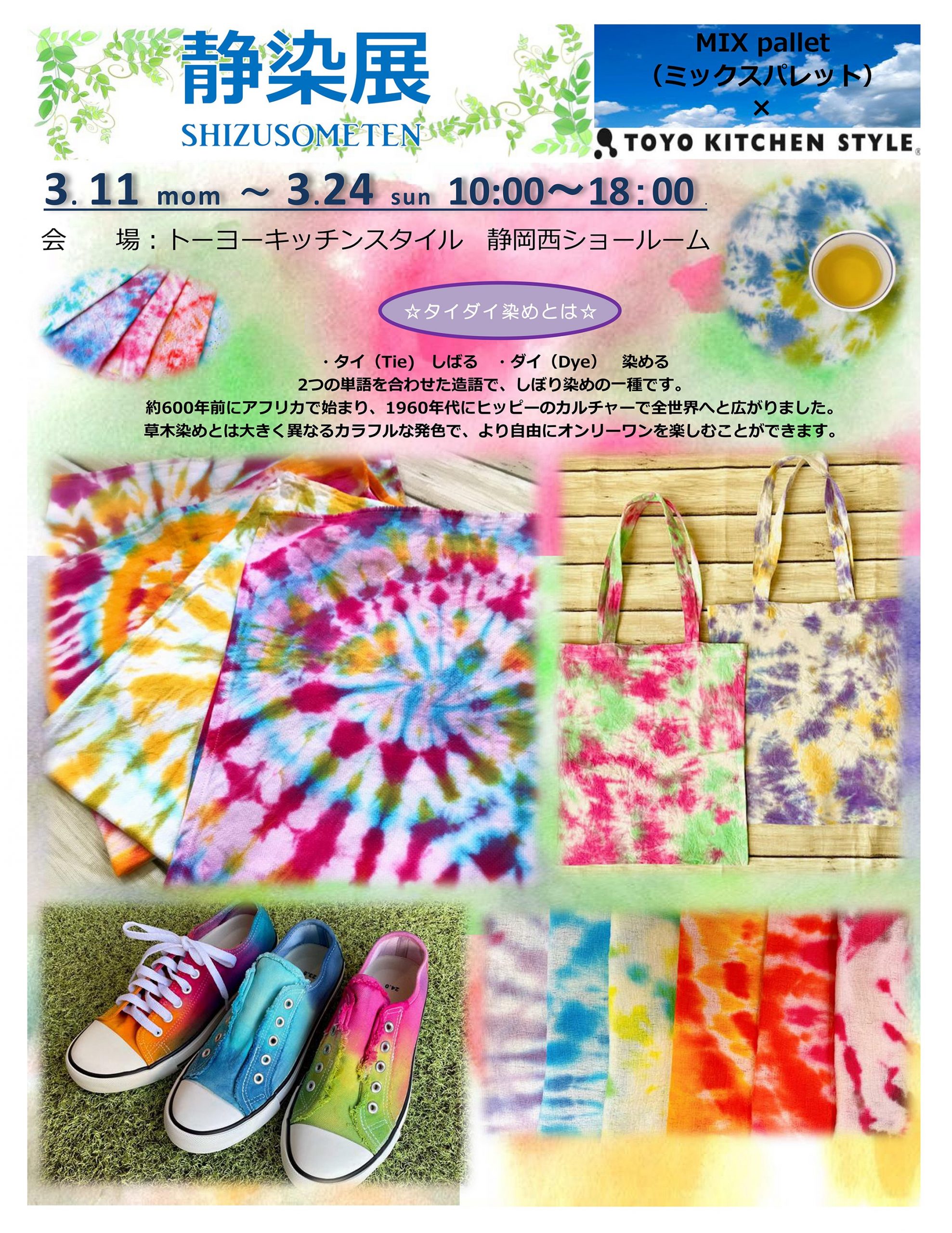 静岡西ショールームにて「MIX pallet(ミックスパレット)」相馬りょう様の作品展『静染展(しずそめてん)』を開催いたします。
