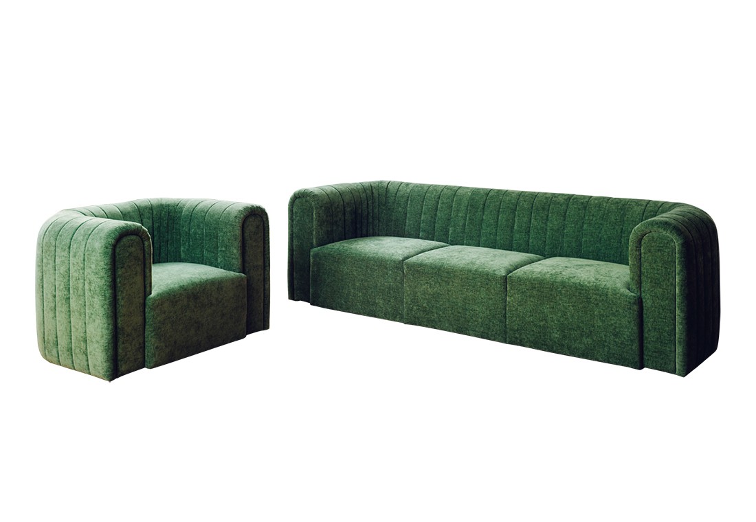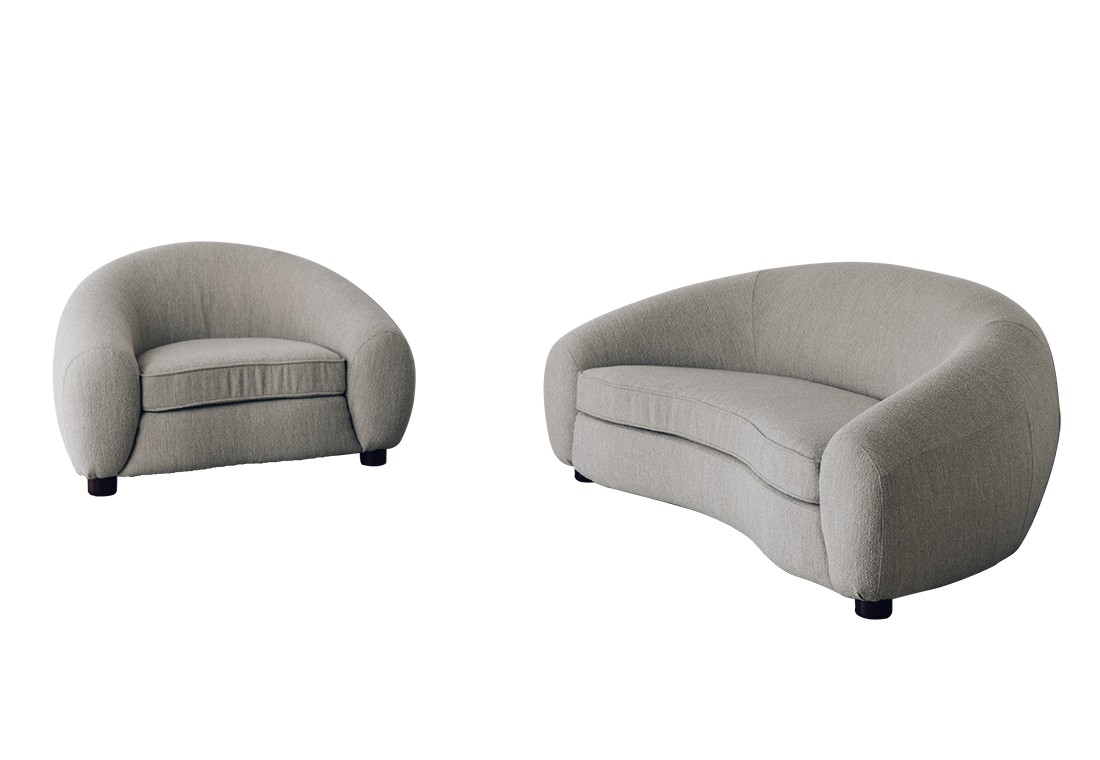 囲まれるような背もたれと肘掛けで、全体のスクエアなアウトラインを生み出しています。
