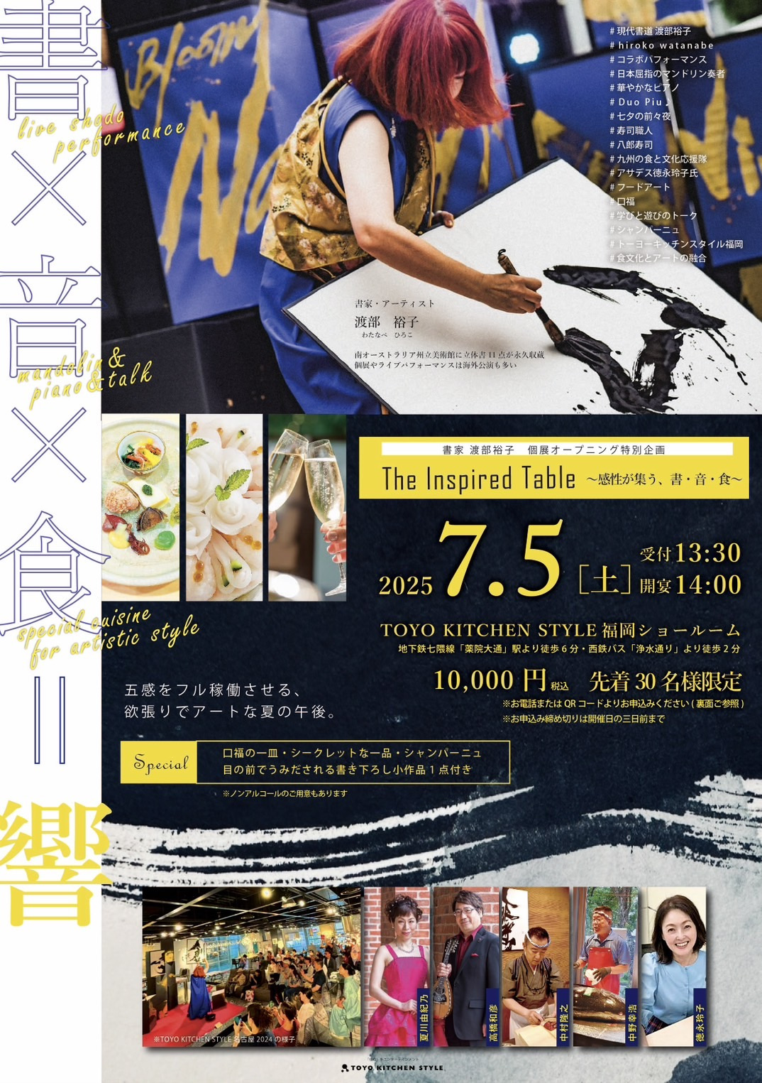 初日の7月5日にはオープニング特別企画として「The Inspired Table~感性が集う、書・音・食~」を開催します。