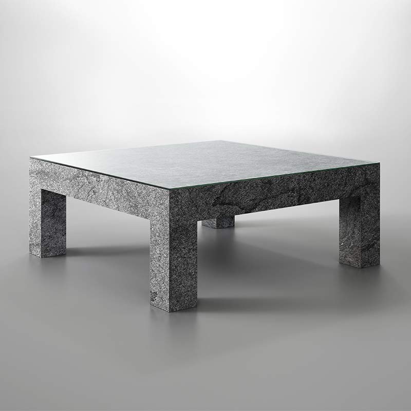 中央には、天然石の美しさが際立つ「銀嶺ローテーブル」がソファやカーペットと美しく調和し、空間全体に統一感と深みを与えてくれます。