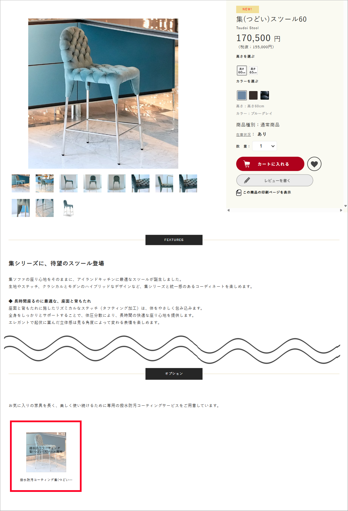 集(つどい)シリーズ、ニューヨークスツールをご購入の際は是非「撥水防汚コーティング」も合わせてご検討ください。