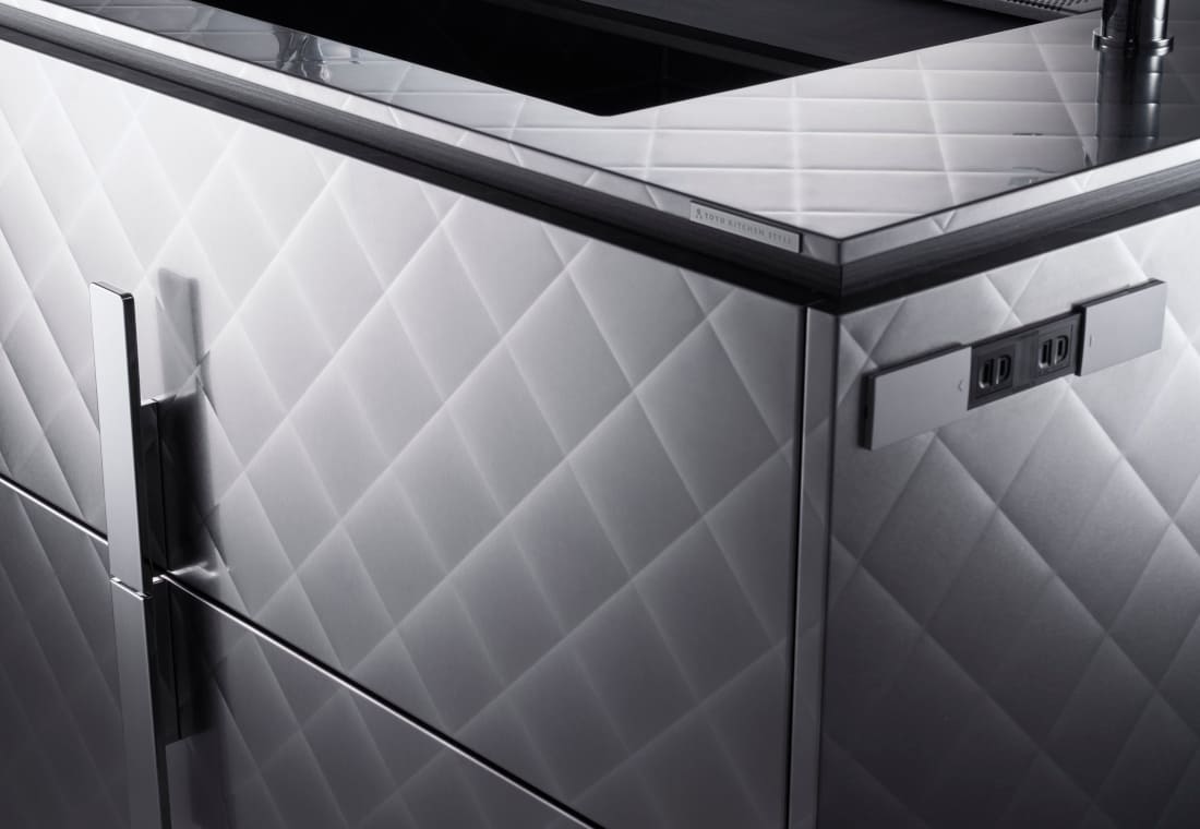 特殊なプレス技術でダイヤ型の幾何学模様を描き、キルティングのような立体感を実現しました。