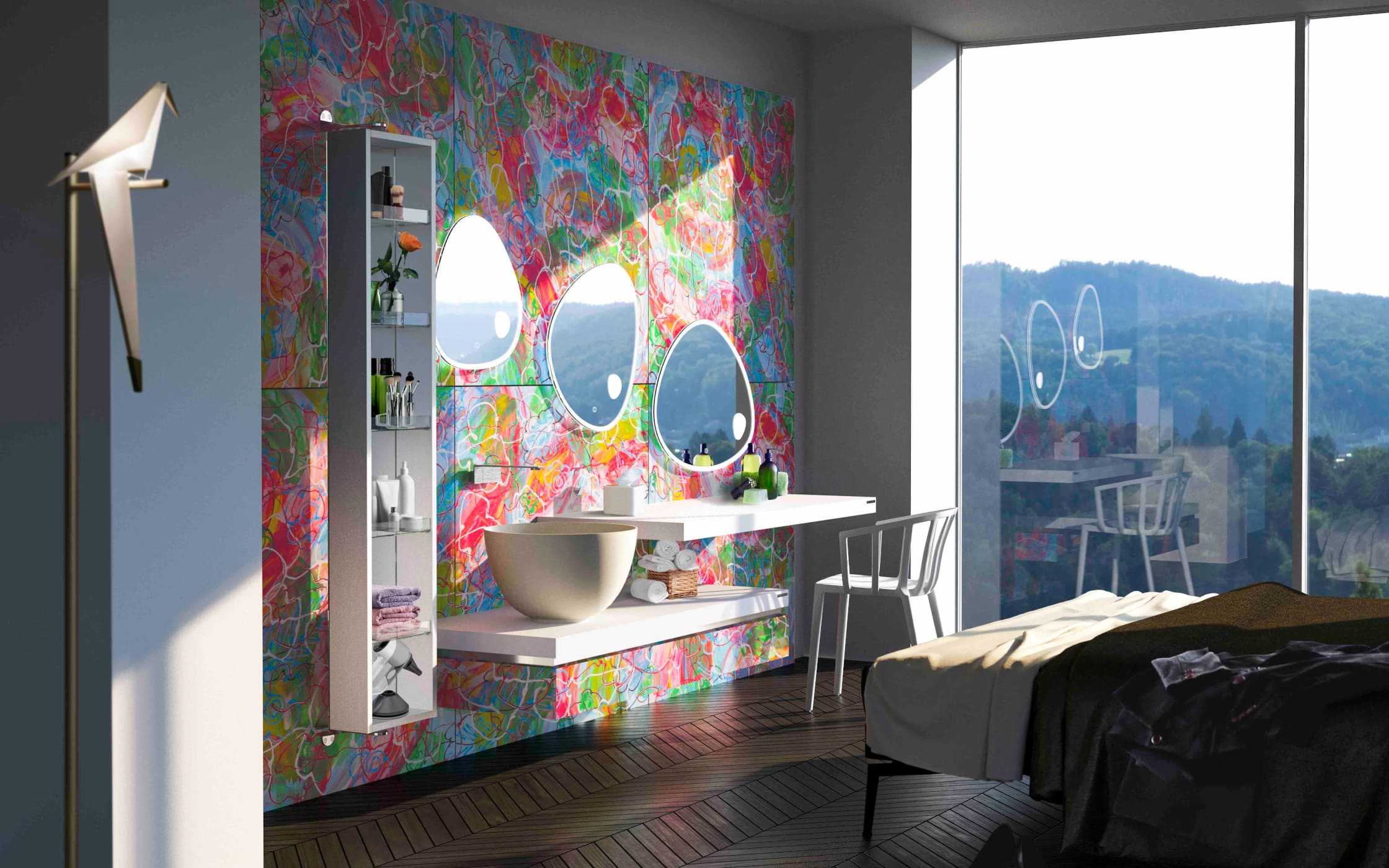 トーヨーキッチンスタイルのオリジナル洗面空間「ドレスコア」を展示いたします。鏡を中心に、メイクアップとドレスアップを一体化できる、身支度に最適な空間です。ベッドルームやバスルーム、クローゼットとの壁を取り払い、「身だしなみ」という行為をシームレスに一つの場所で完結させることができます。