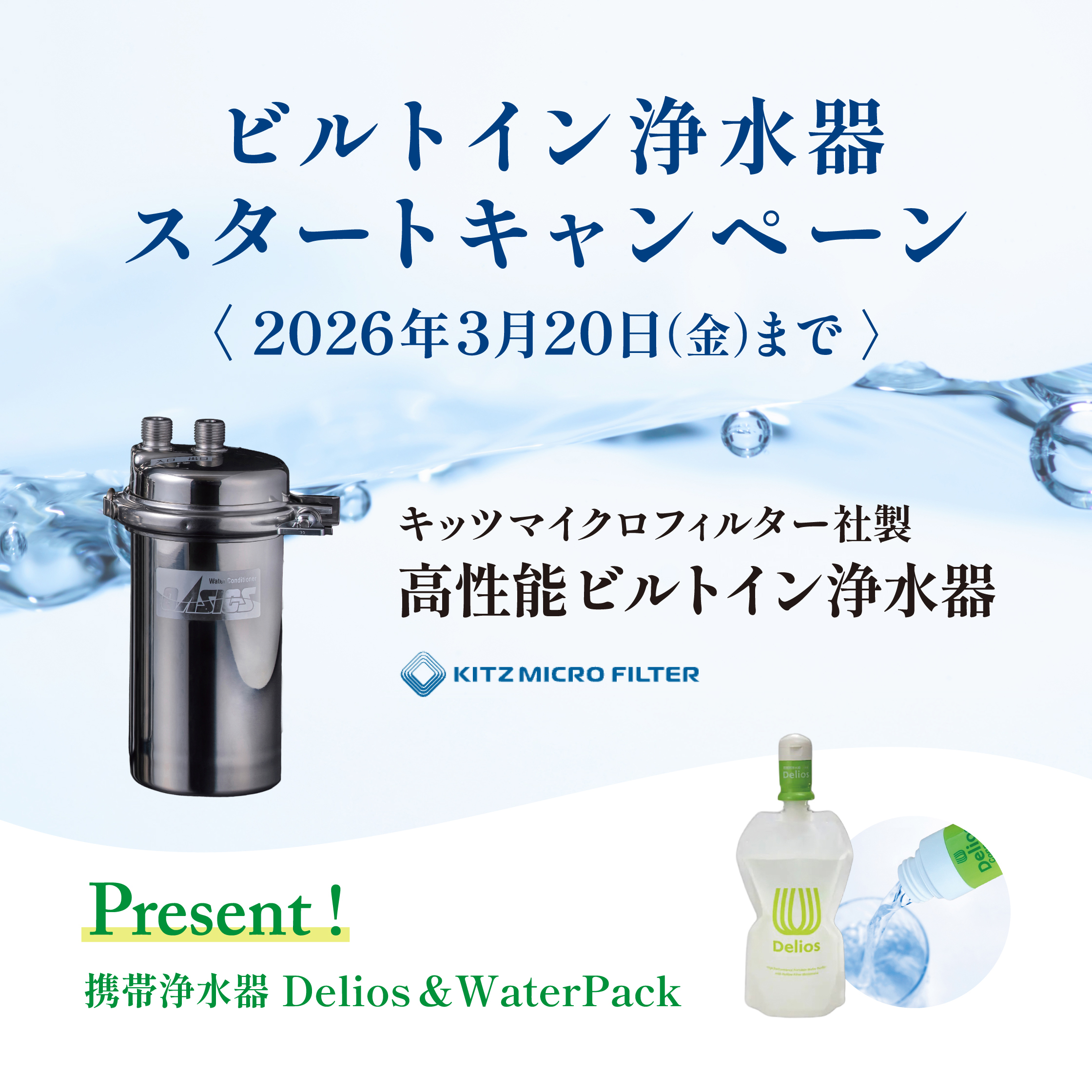 全国のショールーム、オンラインショップにてビルトイン浄水器スタートキャンペーンを実施いたします。