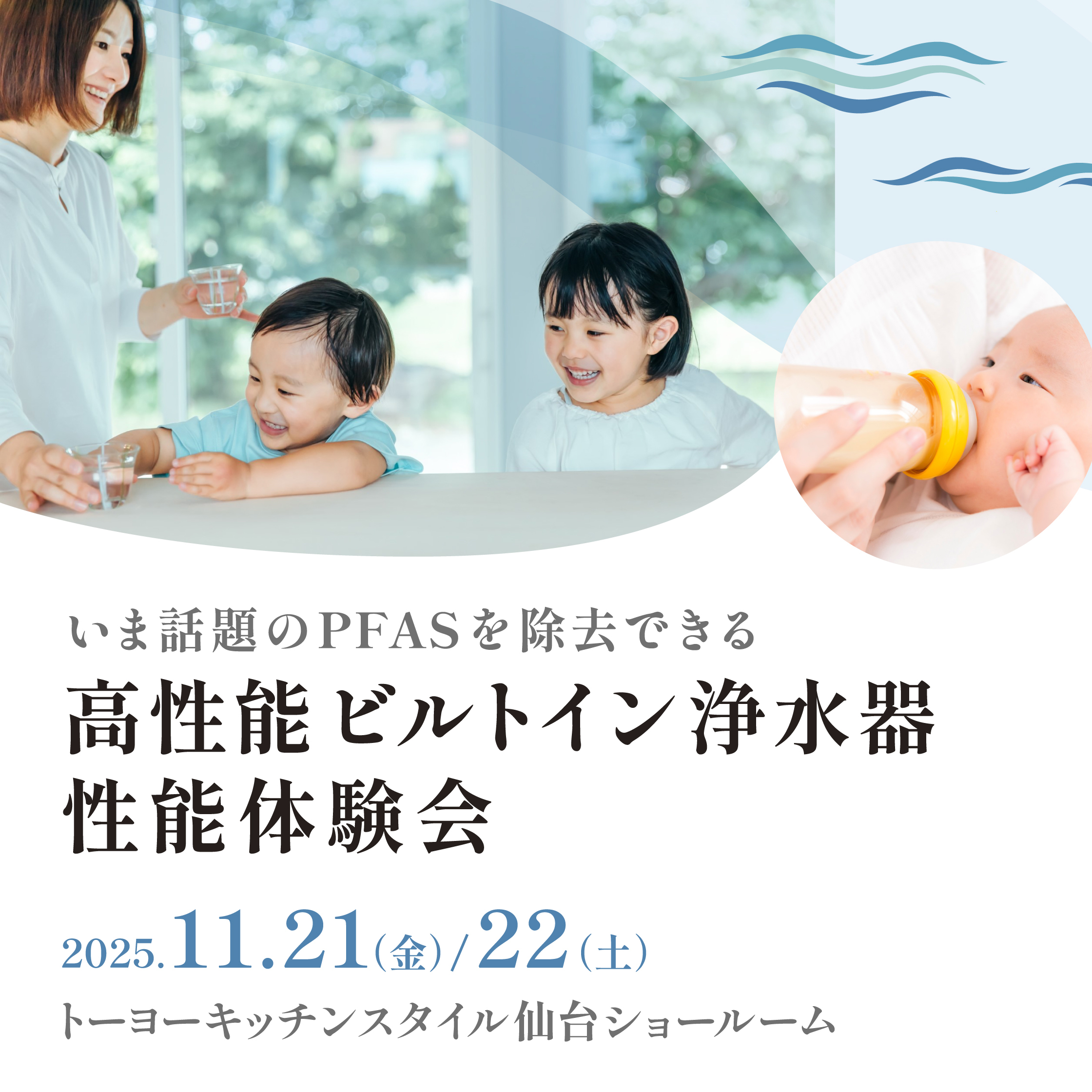 仙台ショールームにていま話題のPFASを除去できる『高性能ビルトイン浄水器』性能体験会を開催します。