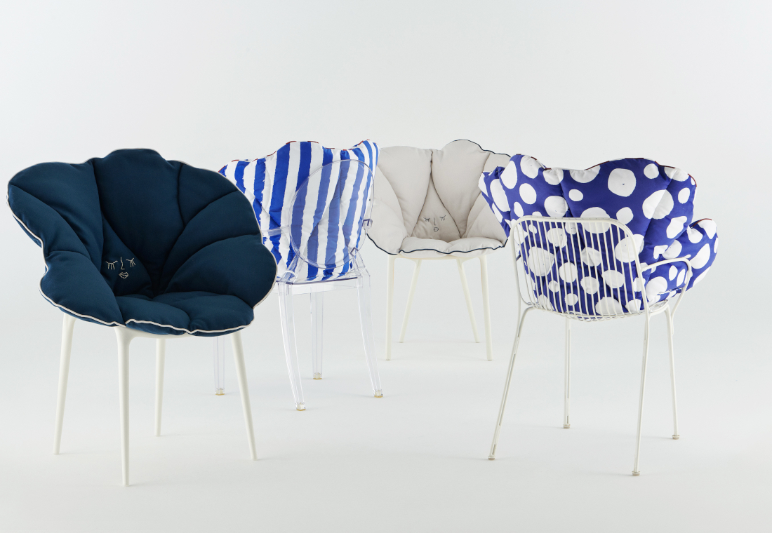 Kartellを象徴する数々の名作チェアに、花びらをモチーフにしたフォルムが身体を包み込み、より快適な座り心地へと導きます。