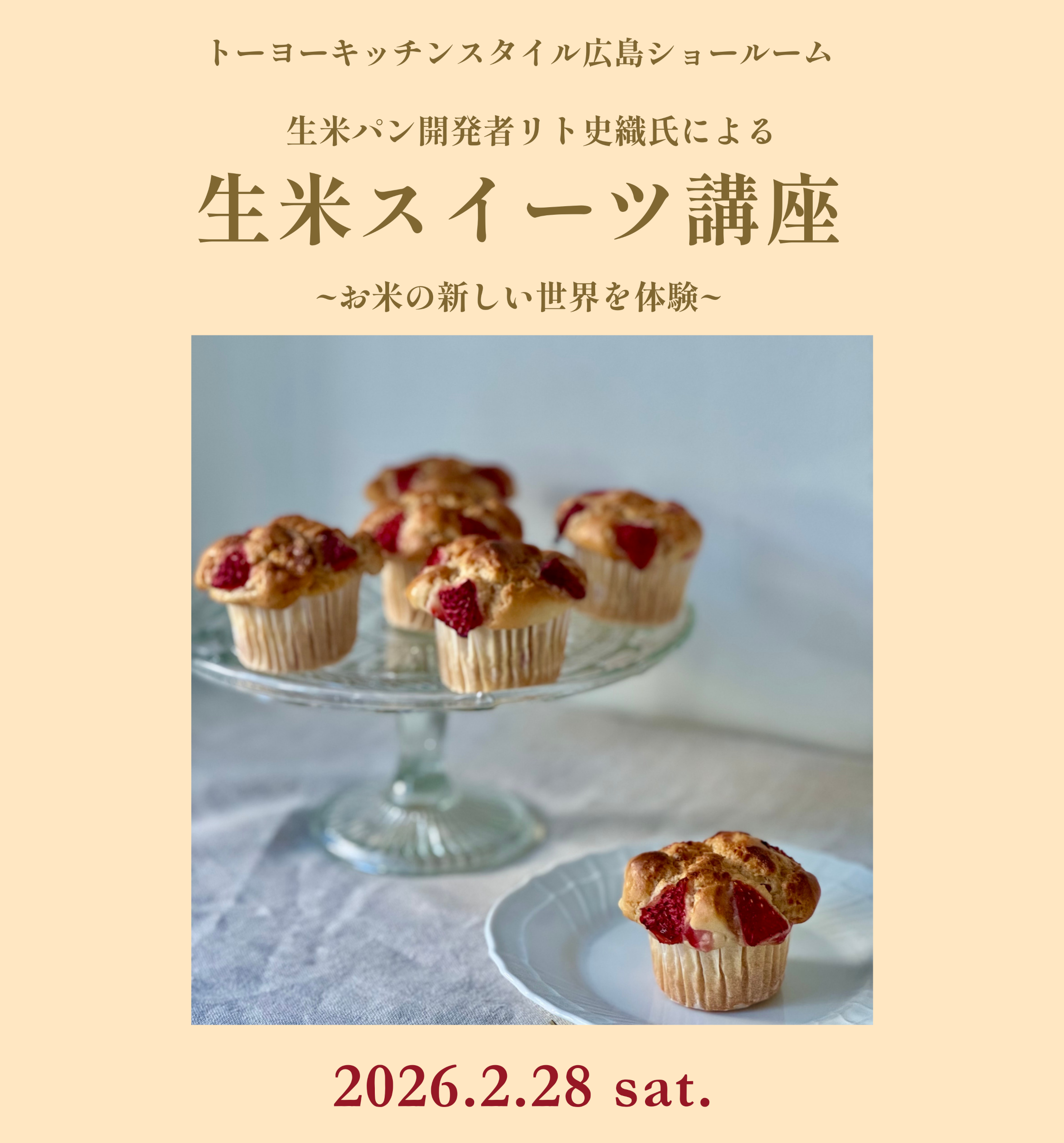 広島ショールームでは、生米パン・生米スイーツの開発者リト史織氏をお招きし、生米スイーツ講座を開催いたします。