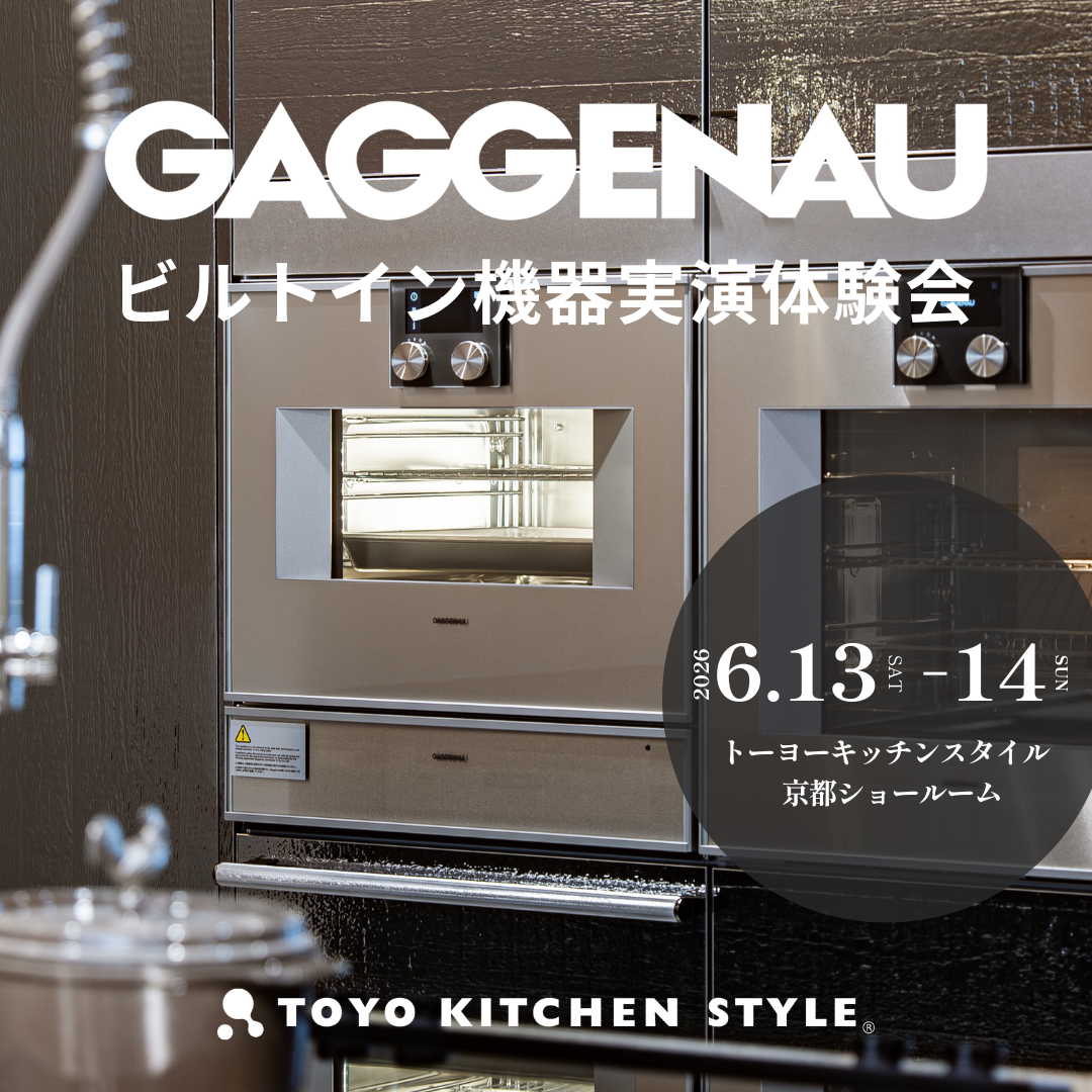 京都ショールームにて、世界最高峰のビルトイン機器ブランド、『GAGGENAU(ガゲナウ)』の実演体験会を開催いたします。 ガゲナウ日本総輸入販売元株式会社N・TEC藤原社長様による、ガゲナウ社ビルトイン機器のくわしい説明を行います。 日時:2026年6月13日(土)・14日(日) 11:00~/ 15:00~ 参加費:無料 場所:トーヨーキッチンスタイル京都ショールーム 京都府京都市中京区富小路通御池上ル守山町156-3 参加ご希望の方は下記フォームよりお申し込みください。 お申し込みフォーム みなさまのご参加お待ちいたしております。