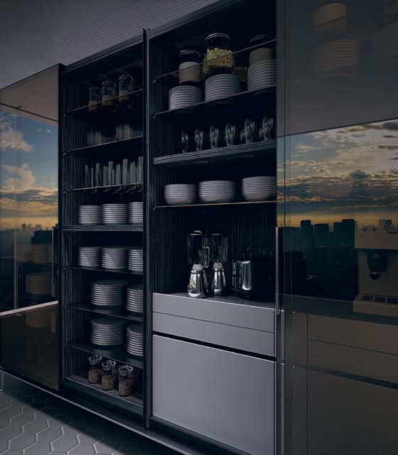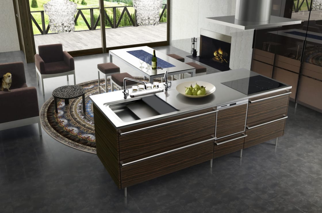 アイランドキッチンでも大容量の収納力を持ち、ダイナミックに料理を楽しむ。360°どこからでもアクセス可能。