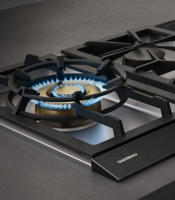 壁面の収納力を活かせるオーセンティックスタイル。調理に専念しやすく、排気効率も良好。