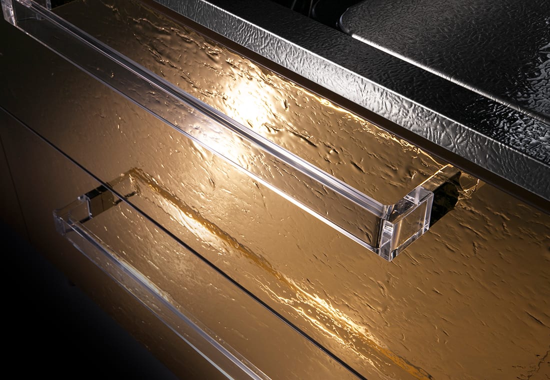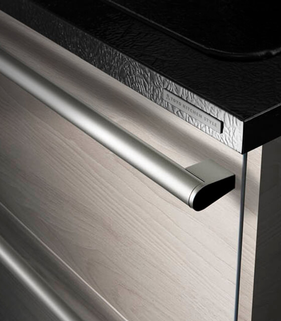 キッチン扉に採用するHPL(ハイプレッシャーラミネート)は、キズや火、水、汚れに強く、耐久性に優れた素材。キッチン環境で高いパフォーマンスを発揮します。さまざまなデザインを再現できる表現力の高さも魅力。ヨーロッパの専門メーカーと提携し、キッチンを長く美しく使うことを研究した答えです。