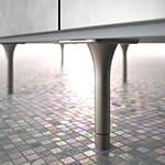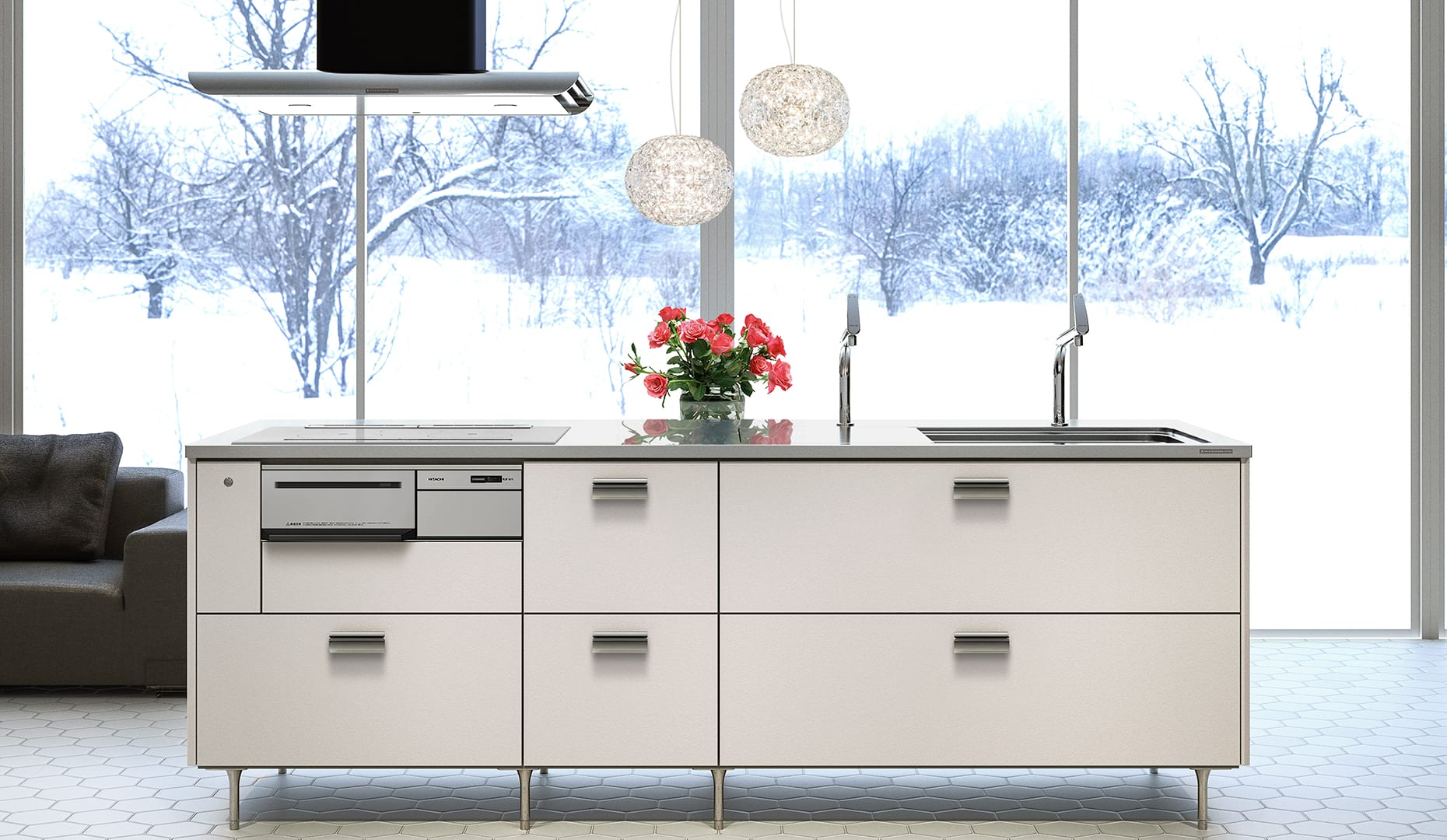 浮遊感を演出する脚構造「エアフロー」など、独自の技術とノウハウが詰まったステンレスキッチン。