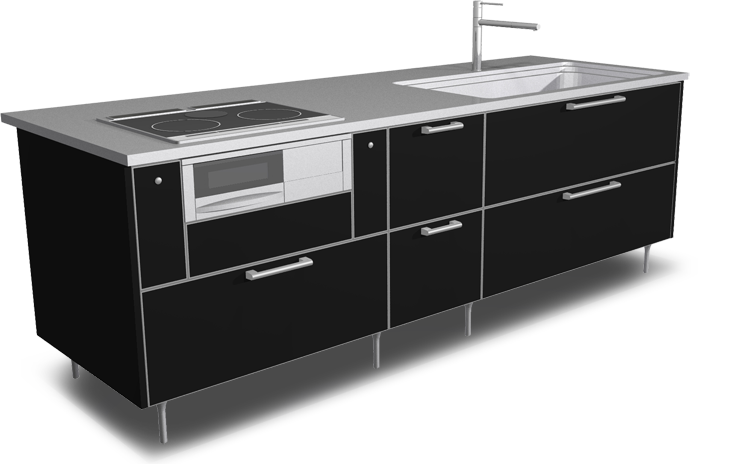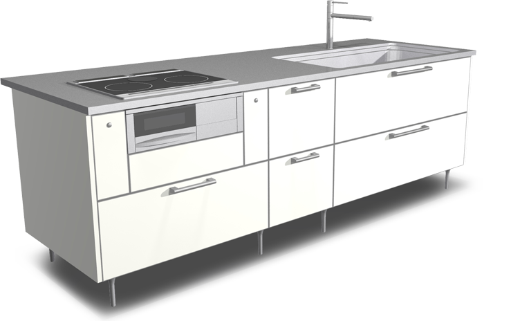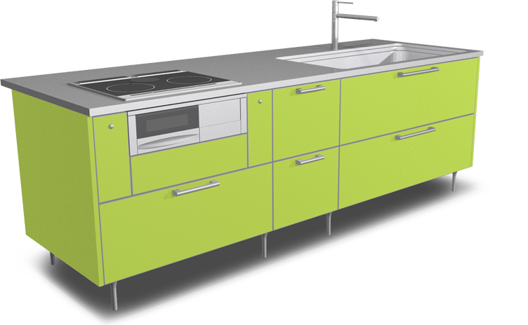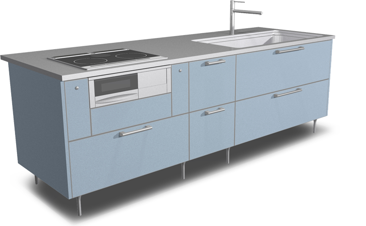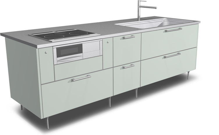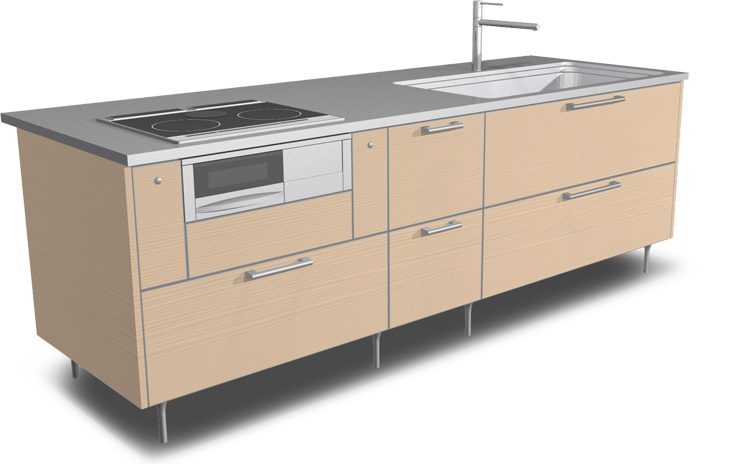 キッチンの間口は3サイズ( W244/259/274cm )、奥行きも3サイズ( D77/90/105cm )。高さは2つ(H85・90cm)。選ぶのはたったこれだけの簡単モジュラーシステムです。