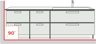 コーナーが直角でない場合には、壁とキッチンの間に隙間ができるなど正しくキッチンの設置ができません。