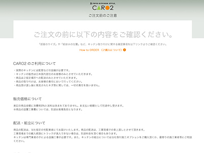 CARO2は通常のシステムキッチン同様に組み立て式ですが、ワークトップやシンクユニットなど大きなパーツが含まれています。搬入口や搬入口から設置場所までの経路に充分なスペースが確保できているか、確認しましょう。