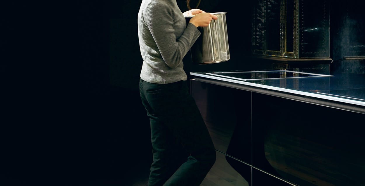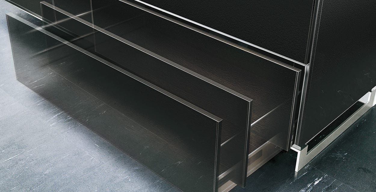 ハンドルレスのバビロンは、電動で引き出しがフルオープンする「サーボドライブシステム」を標準装備。両手で鍋をもったまま、また手が汚れている時でもひざなどで軽くワンプッシュするだけで、スムーズに引き出しを開けることができます。もちろん閉めるときもブルモーションで軽く静かにしっかりと収まります。
