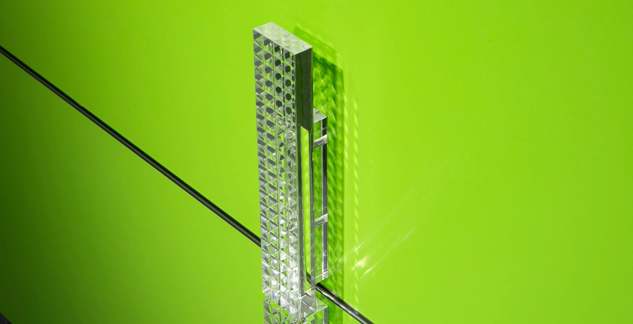 純度の高いアクリル製ハンドルは、ガラスのように透明で、ドアカラーを美しく演出。