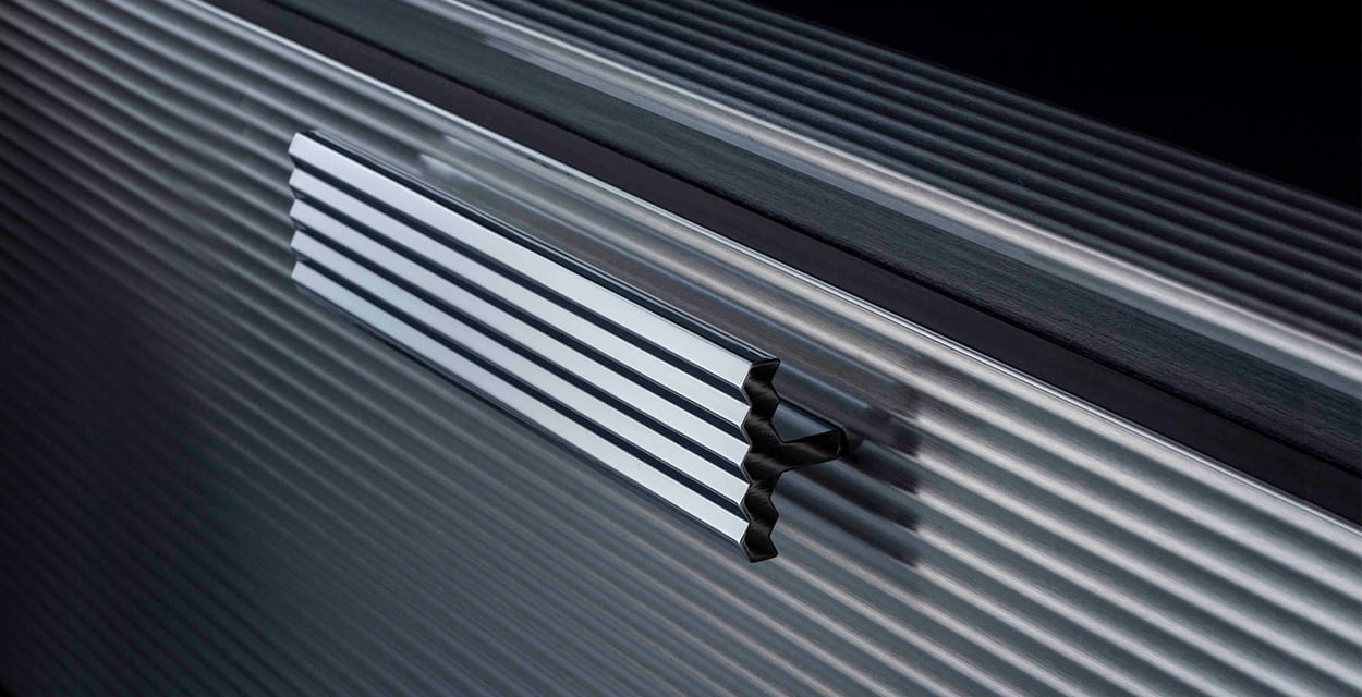 重厚感のあるアルミを贅沢に使った新ハンドル。通常の10倍の時間をかけてバフ仕上げを施し、その上からクロームメッキで鏡のようなツヤ感を加えています。その映り込みから、日の光や景色、家族の気配も感じさせてくれます。