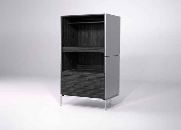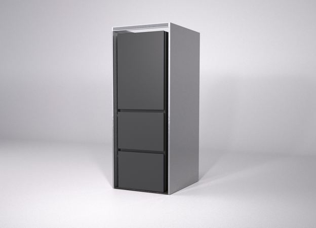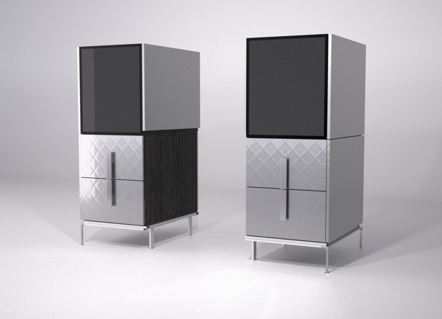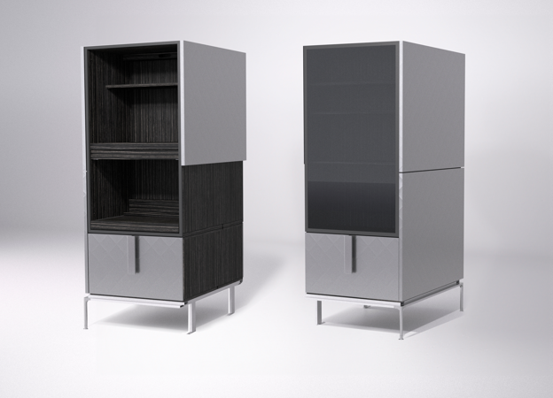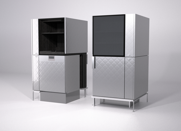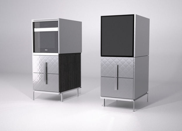 側面タイプの大型家電収納庫、上下2段に家電が収められます。